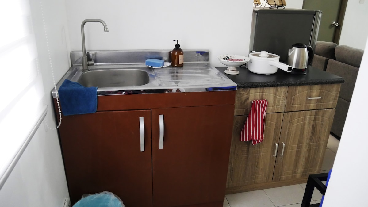 Un apartamento amueblado tipo estudio (34 metros cuadrados) totalmente climatizado, con cocina propia con cocina de inducción, nevera, horno microondas, tostadora de pan, utensilios de cocina, ducha fría y caliente y muy cerca (5-6 minutos en coche) de la Universidad de Filipinas Los Baños y a 4-5 minutos del Instituto Internacional de Investigación del Arroz (IRRI) y a 3-4 minutos del Instituto de Fitomejoramiento (IPB).