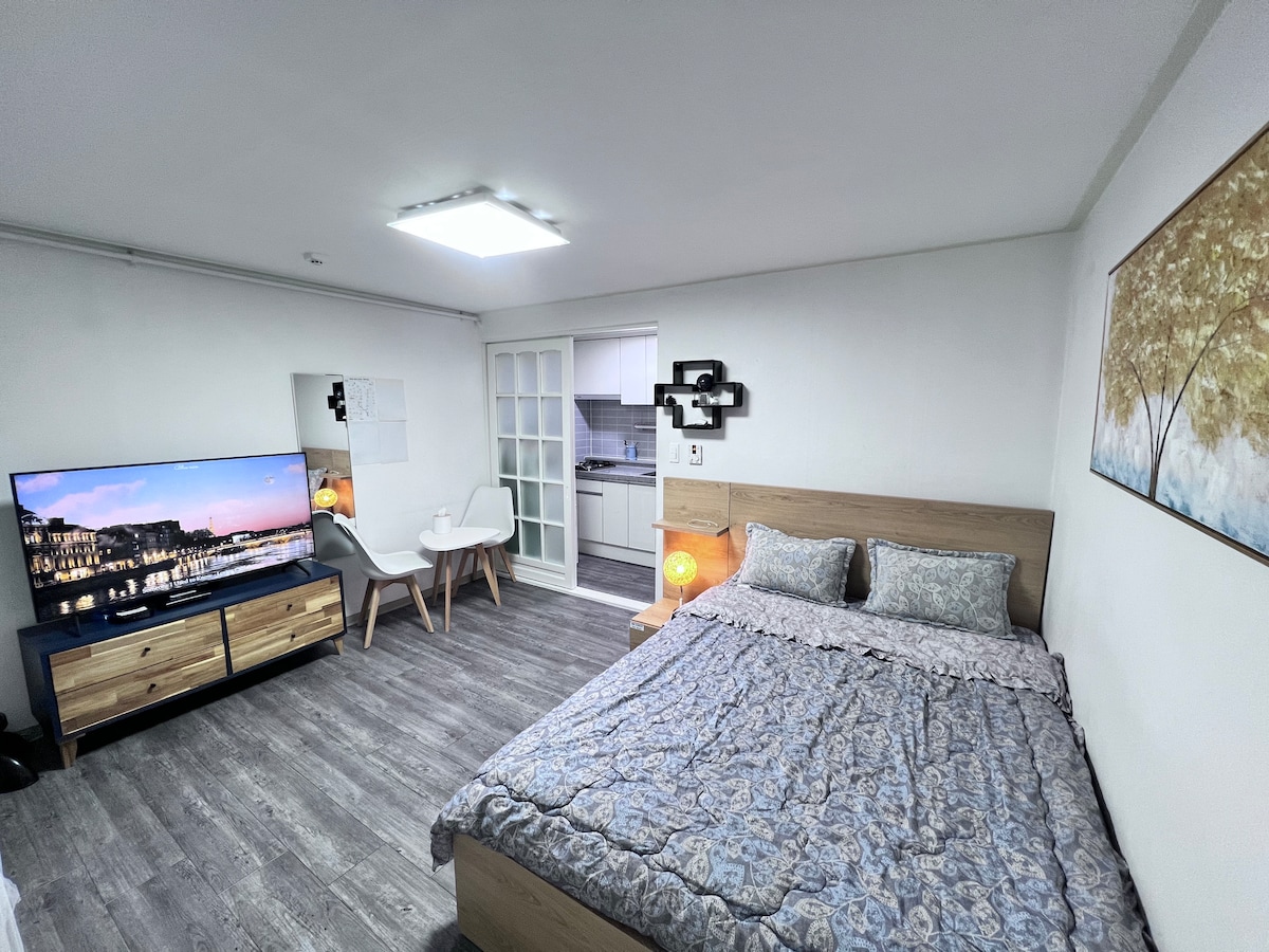 “Un descanso cómodo en una cama acogedora y un espacio acogedor” Nuestro alojamiento es un material de algodón de 60 unidades con un edredón de plumas de ganso y un topper. Proporcionamos una manta y siempre nos encargamos de la lavandería y la limpieza para proporcionar un descanso limpio y cómodo. Damos la bienvenida a todos aquellos que necesitan un descanso para viajar, viajes de negocios y un breve descanso. ✔️ Tienda departamental Galleria (Time World). Daiso a 5 minutos a pie. ✔️ A 10 minutos a pie de la estación de Galma ✔️Galma Park (Centro Nacional de Deportes de Vida, Biblioteca, Paseo) a 3 minutos a pie ✔️ Seongsimdang (Grandes almacenes Lotte, sucursal DCC) a 10 minutos en auto. ✔️ Chungnam National University, KAIST a 10 minutos en auto ✔️ Varios servicios de entrega de comida disponibles: restaurantes cercanos, enlace al mapa de atracciones turísticas proporcionado ✔️ Tiendas de conveniencia, lavanderías, etc. ✔️ Wi-Fi gratuito y Netflix disponibles ✔️ estacionamiento - Estacionamiento justo enfrente del edificio o en el callejón. - Estacionamiento Galma Park disponible a 3 minutos a pie. ✔️Otros - Consultas o inconvenientes: Texto (Messenger 100ritter) - Llegada a las 3:00 p. m. / Salida a las 11:00 a. m.