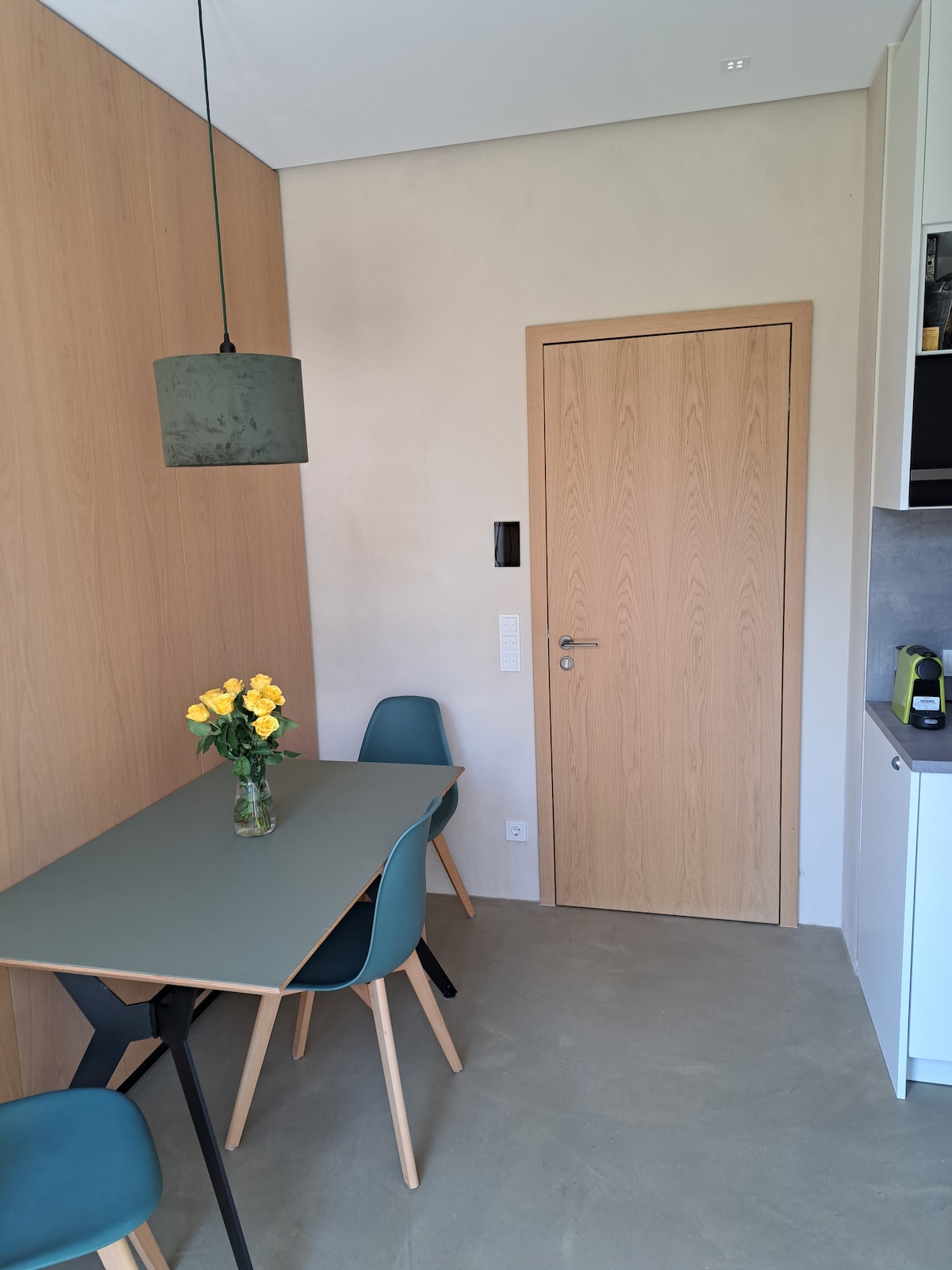 El apartamento está situado en el lado sur de nuestra casa y tiene una entrada independiente. Le esperan 57 metros cuadrados de espacio habitable con baño de ducha, lavadora y cocina totalmente equipada. Calefacción por suelo radiante en todo el apartamento. El amplio salón-dormitorio con una acogedora cama doble también ofrece suficiente espacio para dos huéspedes. La terraza invita a relajarse en los días soleados.