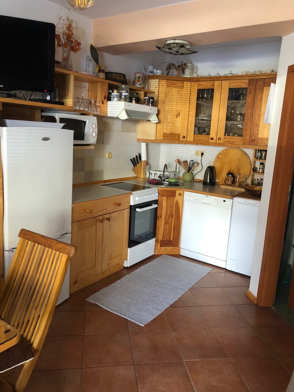 Este acogedor apartamento de estilo alpino de 40m2 cuenta con una sala de estar con cocina y comedor, un dormitorio y un baño.En el dormitorio hay una cama doble y litera.La posibilidad de alojamiento para una persona adicional está disponible en el sofá de la sala de estar.En la cocina encontrarás todo lo necesario para preparar tus comidas, estufa con horno, nevera, lavavajillas y lavadora, microondas y TV. En verano, te enfriarás en la esquina frente al apartamento.