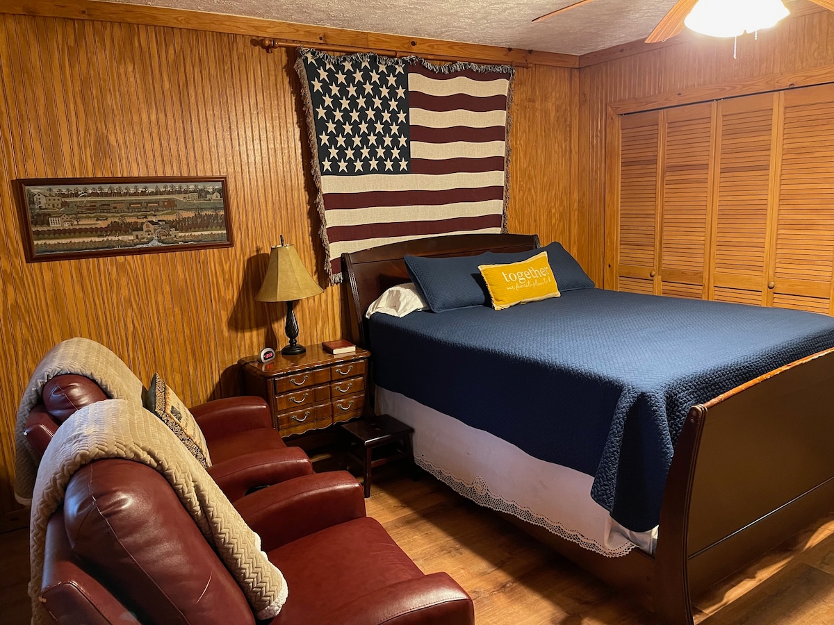 You won’t want to leave this charming, one-of-a-kind place. The Violet Room is equipped with 2 queen beds and has one of the best views in the Lodge with 3 large windows overlooking the Great Smoky Mountains. This room is on our lower floor. This is a private room within our Lodge. Guests do have access to our Great Room where there is a pool table and use of our Grand Patio where you can enjoy your coffee from our complimentary coffee bar. The Great Room and Patio are common spaces.