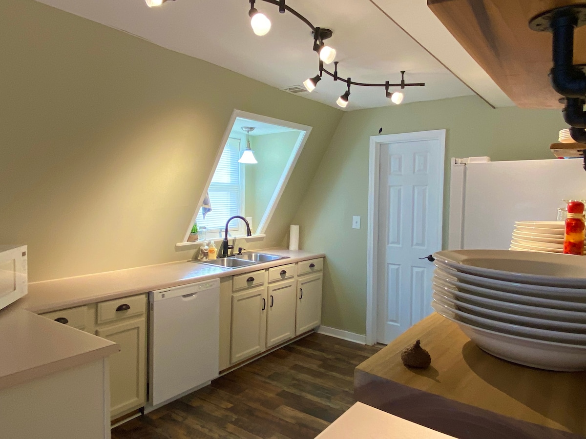 Private loft apartment on 25 wooded acres, sits separate from main farm house. Private deck overlooking the woods. Everything you need for a cozy stay. Located on the edge of the Blue Ridge Escarpment with lakes Jocassee and Keowee just a few miles away. Numerous state parks, hiking, biking , waterfalls and kayaking or just peace and quiet. We are a sustainable homestead with an organic garden, chickens ,quail, dogs and cats. Our water comes from a natural spring.