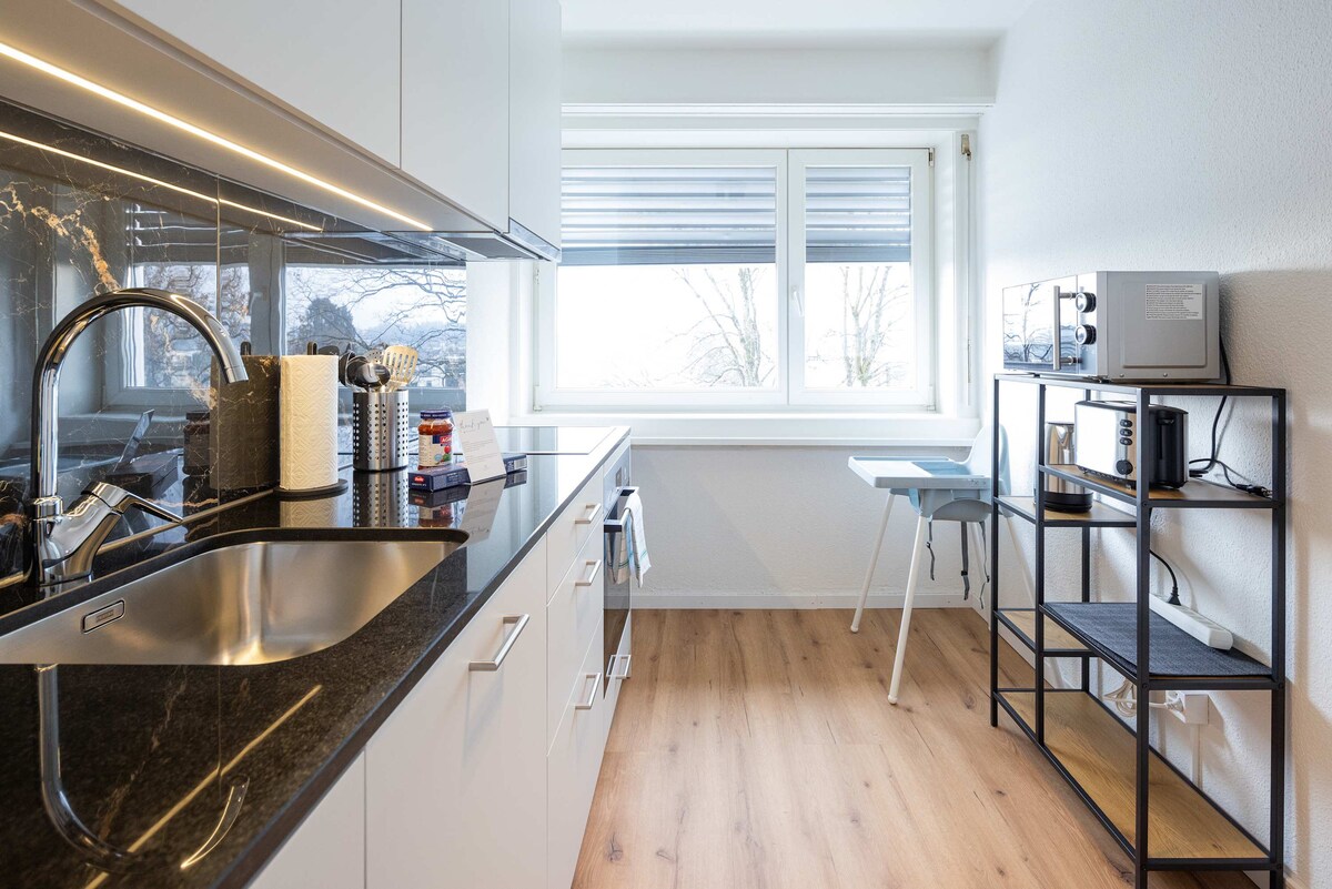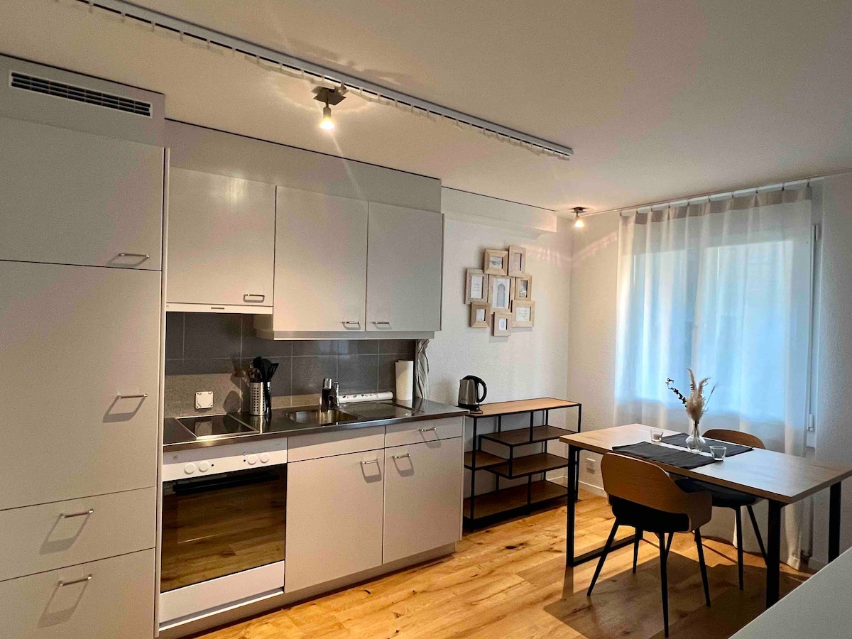 SE ESTÁN REALIZANDO OBRAS DE REFORMA EN OTROS PISOS DEL EDIFICIO, LO QUE PUEDE GENERAR RUIDO DURANTE EL DÍA. POR LO TANTO, EL PRECIO SE HA REDUCIDO EN UN 50%. Apartamento recién renovado en una zona tranquila, ideal para viajes de negocios y familias. A 16 minutos de la estación central de Zúrich, a 9 minutos del aeropuerto ZRH y a 8 minutos de Winterthur. - Cama box spring con ropa de cama de hotel - Bañera y balcón amplio - Cocina con cafetera Nespresso y lavavajillas - Cerca del aeropuerto