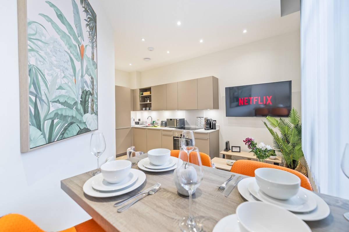 Elevate your stay in this sleek 20th-floor apartment in the heart of Birmingham. Designed with a modern, minimalist aesthetic, the space features clean lines, an open-plan layout, and floor-to-ceiling views of the city skyline. Perfectly located near top restaurants, shops, and transport links, it offers both convenience and a calm and peaceful escape above the urban energy—ideal for unwinding and enjoying quality time in style.