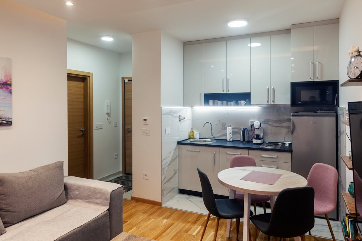 ¡Lujoso apartamento moderno en el corazón de Zlatibor! Situado en un tranquilo complejo turístico a pocos minutos a pie del centro, Gold Gondola, lago y pista de esquí. Ubicación perfecta para unas vacaciones en cualquier época del año. ◆ Estacionamiento seguro en garaje (gratis) ◆Vista de Tornik ◆ TV inteligente, aire acondicionado, lavadora + secadora, lavavajillas, cafetera ◆Bienestar y spa dentro del complejo (cargo adicional). Para el lujo sin las multitudes, la opción perfecta para la relajación. Zlatibor: ¡todo a tu alcance!