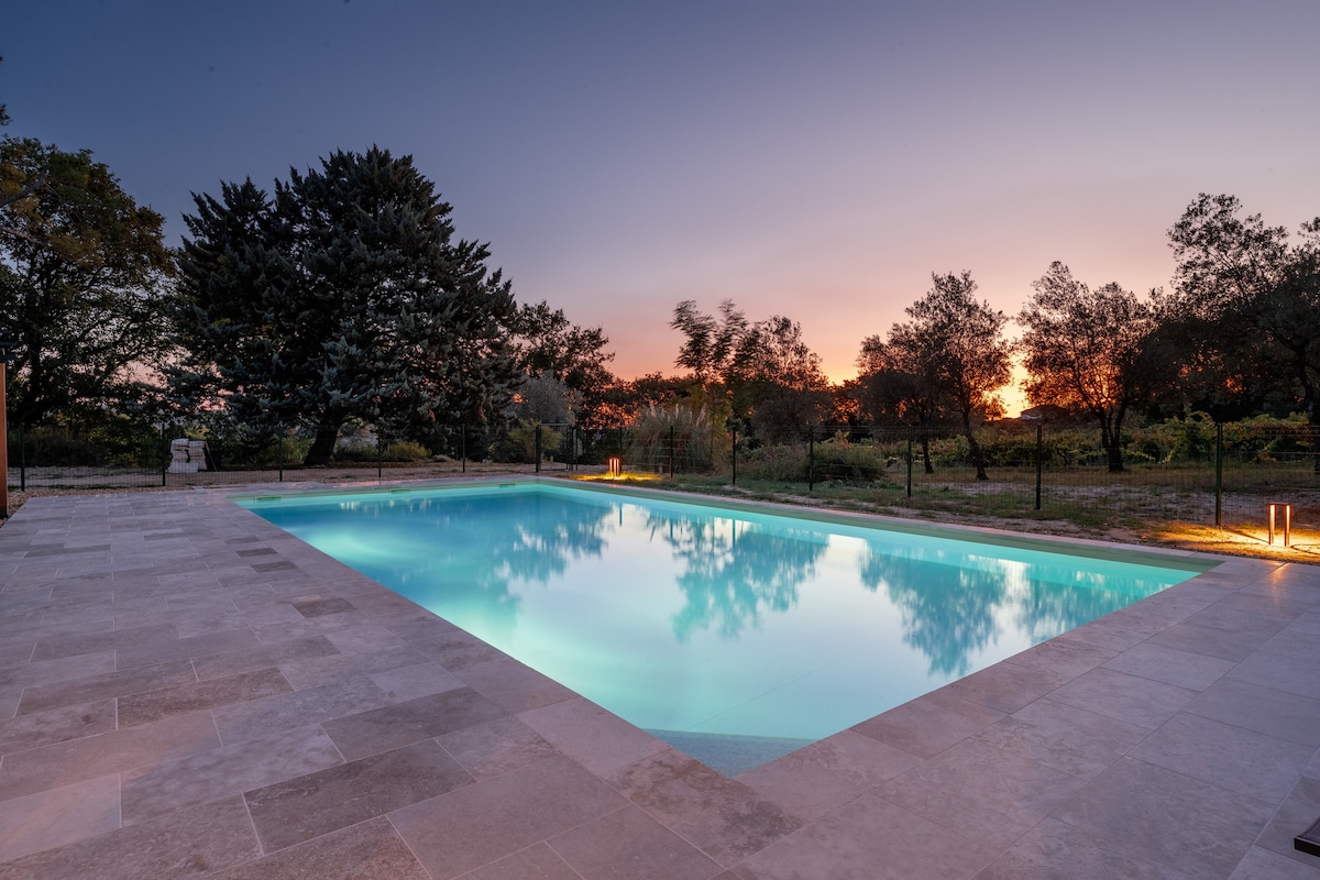 ** ¡APERTURA DEL 2025! NUEVO AL MERCADO. Piscina privada, aire acondicionado completo ** Sumérgete en una naturaleza hermosa y pacífica lejos de todo ruido y estrés en esta hermosa parte de la Provenza Francesa. Relájate viendo las vistas mágicas de los viñedos y los olivos que te rodean. Sumérgete en la nueva y hermosa piscina (6x12 m) mientras esperas al atardecer con una copa de vino directamente del bar de la piscina.