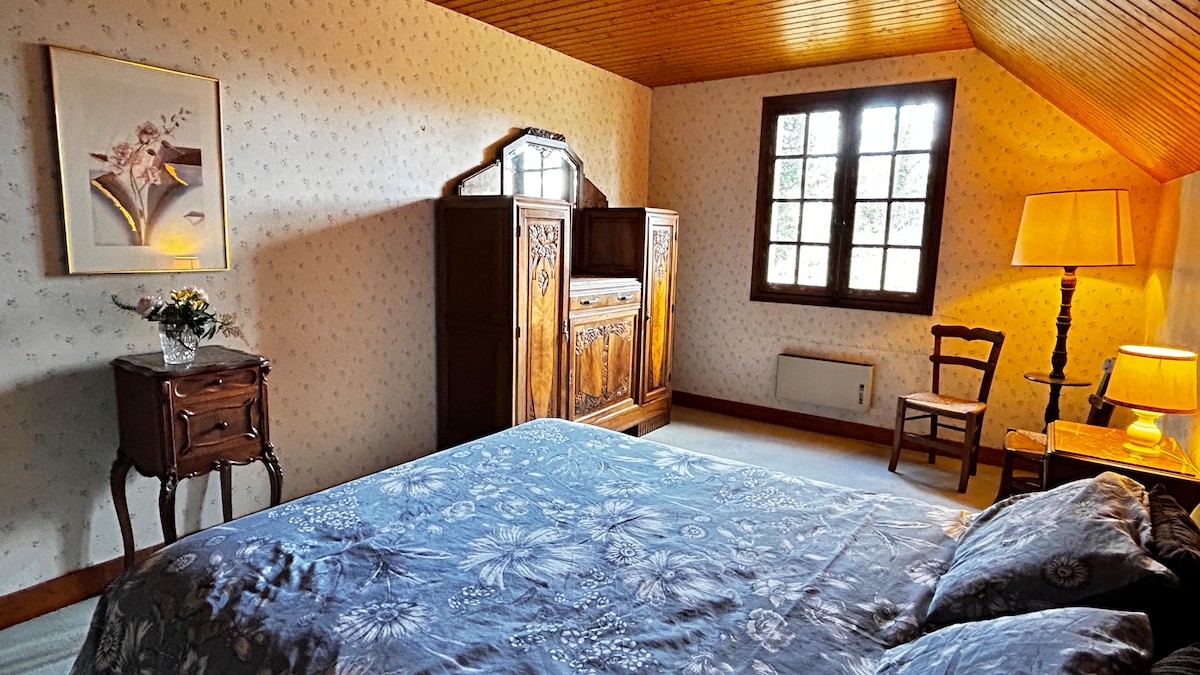 Encantador dormitorio tranquilo para un descanso en tu viaje durante unas horas o más... Estamos en una granja orgánica en el tranquilo campo, sin carreteras ni ruido a nuestro alrededor, solo los caballos, patos y ovejas; no muy lejos del pueblo de Bellac. Te invitamos a visitar la granja, nuestro huerto, las ovejas de las que hacemos nuestro queso y a probar nuestros productos. El dormitorio está situado en una casa apartada de nuestra granja, completamente tranquila y silenciosa para un sueño reparador y relajante.