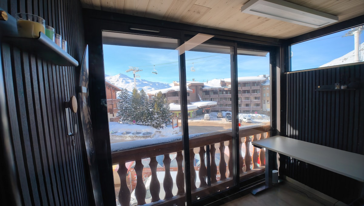 Renovación realizada en verano de 2024. 1 dormitorio: 1 cama doble + 1 cama individual Sala de estar: 1 sofá cama doble es decir, 5 lugares en total. Apartamento de 30 m, orientación suroeste en un pequeño edificio de 3 plantas con una terraza con vistas a las pistas de esquí y trineo de los niños. Situado en el corazón de los 3 Valles, en Val Thorens, en el centro de la estación, en la meseta de la plaza Caron en un callejón sin salida. Limpieza y ropa de cama incluidas en temporada alta de esquí pero no incluidas en temporada baja fuera de esquí