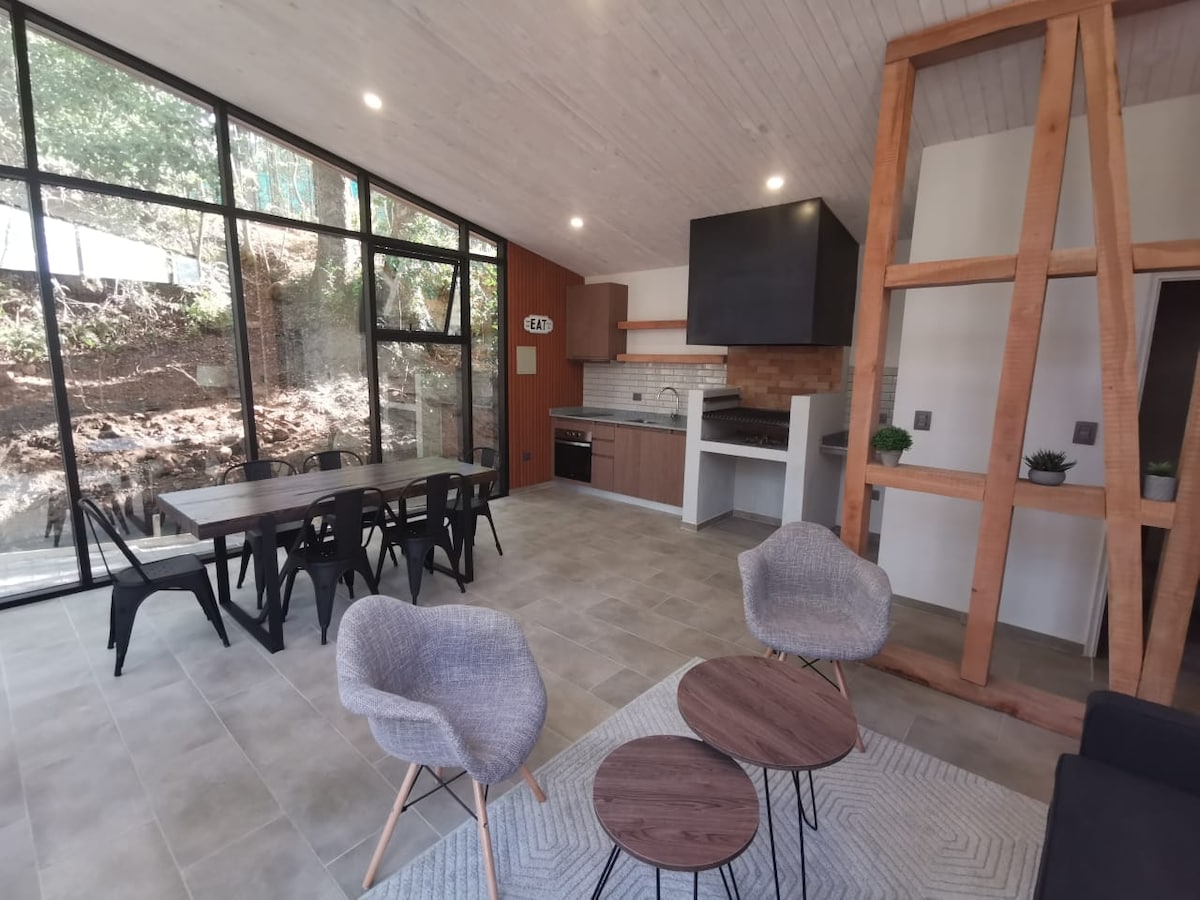 Linda y acogedora cabaña rústica en medio de la naturaleza de Pucón, ideal para desconectarse y tener una estadía de relajo en el sur de Chile. Cercana a las atracciones turísticas de zona como las cuevas volcánicas, Salto el Claro, termas y a no más de 15 minutos en auto del centro de la ciudad. La cabaña tiene gran luz natural y cuenta con dos piezas, un baño y una amplía terraza para disfrutar de la naturaleza.