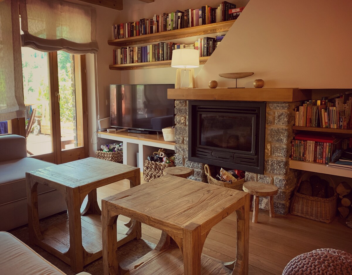 Nuestra casa está Cervoles, un pueblo encantador de casas de piedra, en la cresta de una montaña a 1200 m, próximo al Parque Nacional de Aigüestortes i Sant Maurici y Vall de Boi. Tiene vistas increíbles y está construida con materiales ecológicos. Un lugar perfecto para evadirse unos días, en soledad o compañía, para leer, estudiar, meditar, pintar o explorar la montaña...