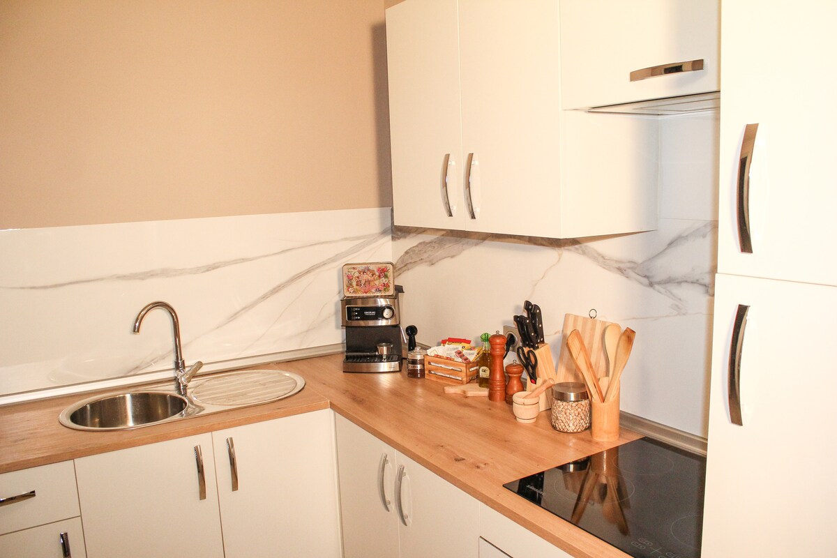 Genießen Sie von der 20 m² großen Sonnenterrasse einen freien Blick auf Meer und Berge sowie traumhafte Sonnenaufgänge und entspannte Abende mit Meeresrauschen. Das hochwertig eingerichtete Apartment bietet moderne Bäder, eine voll ausgestattete Küche, stilvolles Design und indirekte Beleuchtung für eine angenehme Atmosphäre. Jeder Raum ist separat klimatisiert. Ein Gemeinschaftspool mit Panoramablick steht ebenfalls zur Verfügung. Strand, Restaurants und Supermärkte 5–10 Gehminuten entfernt.