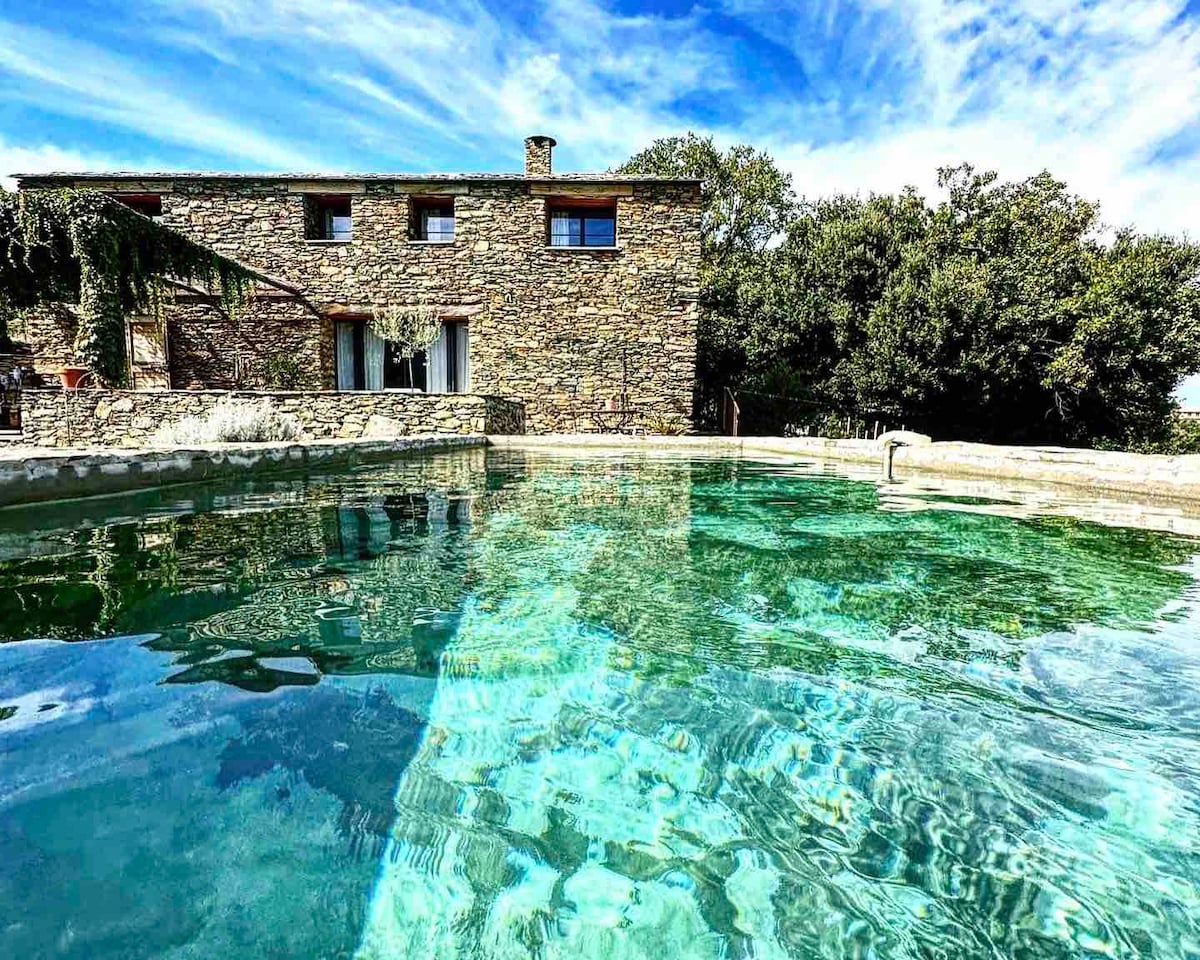 Residencia de piedra Córcega mar, montaña y piscina.