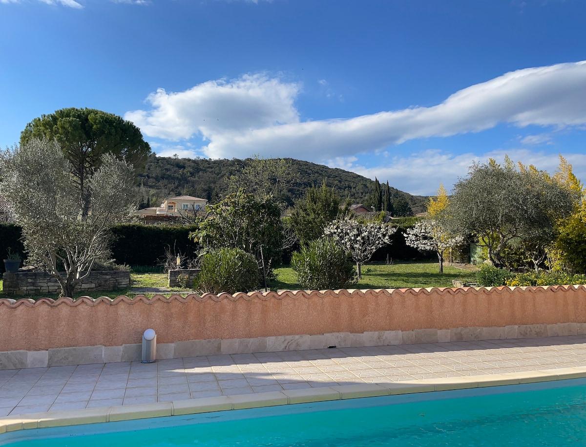 Con una ubicación ideal a 5 minutos del centro de Vallon Pont D'arc, las tiendas y el río, para aprovechar al máximo las diversas actividades que ofrece la Ardèche. La casa tiene todas las comodidades necesarias para pasar agradables momentos en familia o con amigos. Una gran sala de estar luminosa y cocina americana totalmente equipada, una terraza cubierta y no cubierta con vistas a los viñedos y montañas de Ardèche. La piscina es privada, su acceso es totalmente seguro y hay aparcamiento privado.