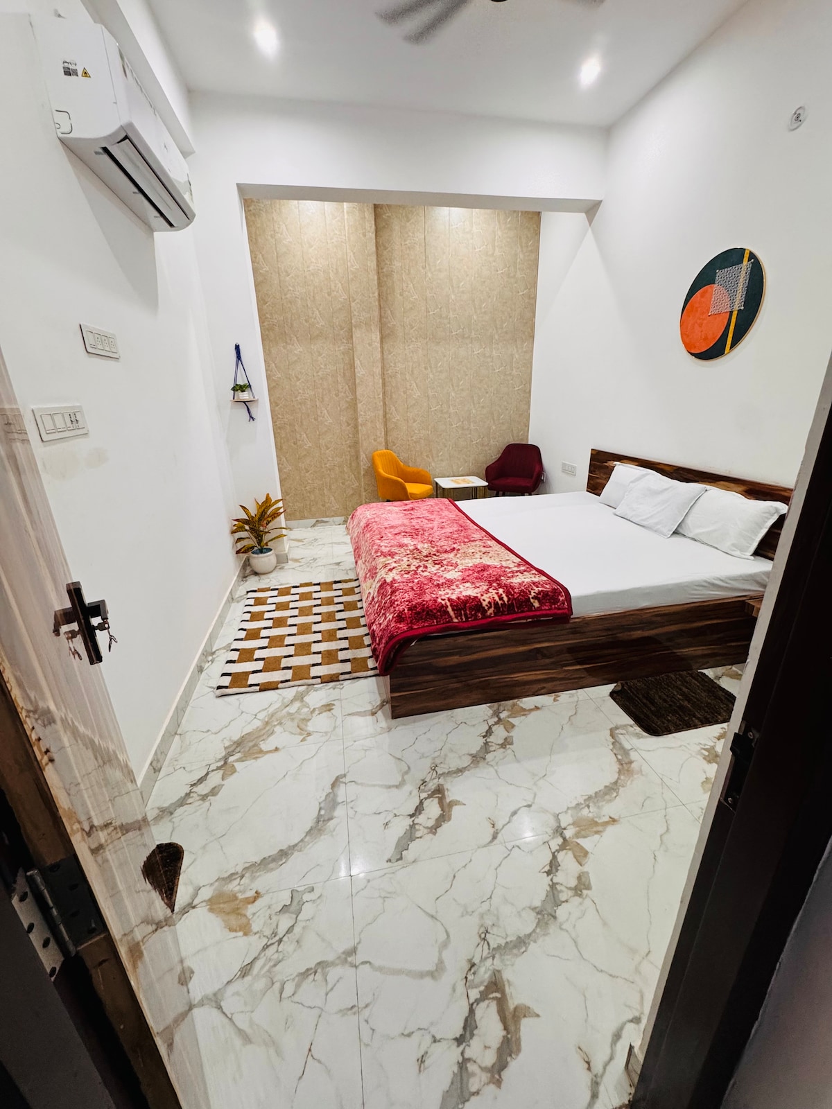 ¡Namasté y Jai Sri Ram! ¡Te damos la bienvenida a Sriram Sleek Suites! Nuestro moderno apartamento es perfecto para una estancia cómoda en el corazón de la ciudad de Varanasi (Kashi). Ubicado en una zona privilegiada a poca distancia a pie de la estación de Banaras BSBS (antes MUV) y Estación de tren Varanasi Cantt (BSB): 4 km Templo Kashi Vishwanath - 5 km BHU - 5 km Ghats - 5 km Disfruta de un diseño elegante, servicios de gran calidad y una ubicación práctica. ¡Reserva ahora para vivir una experiencia inolvidable!