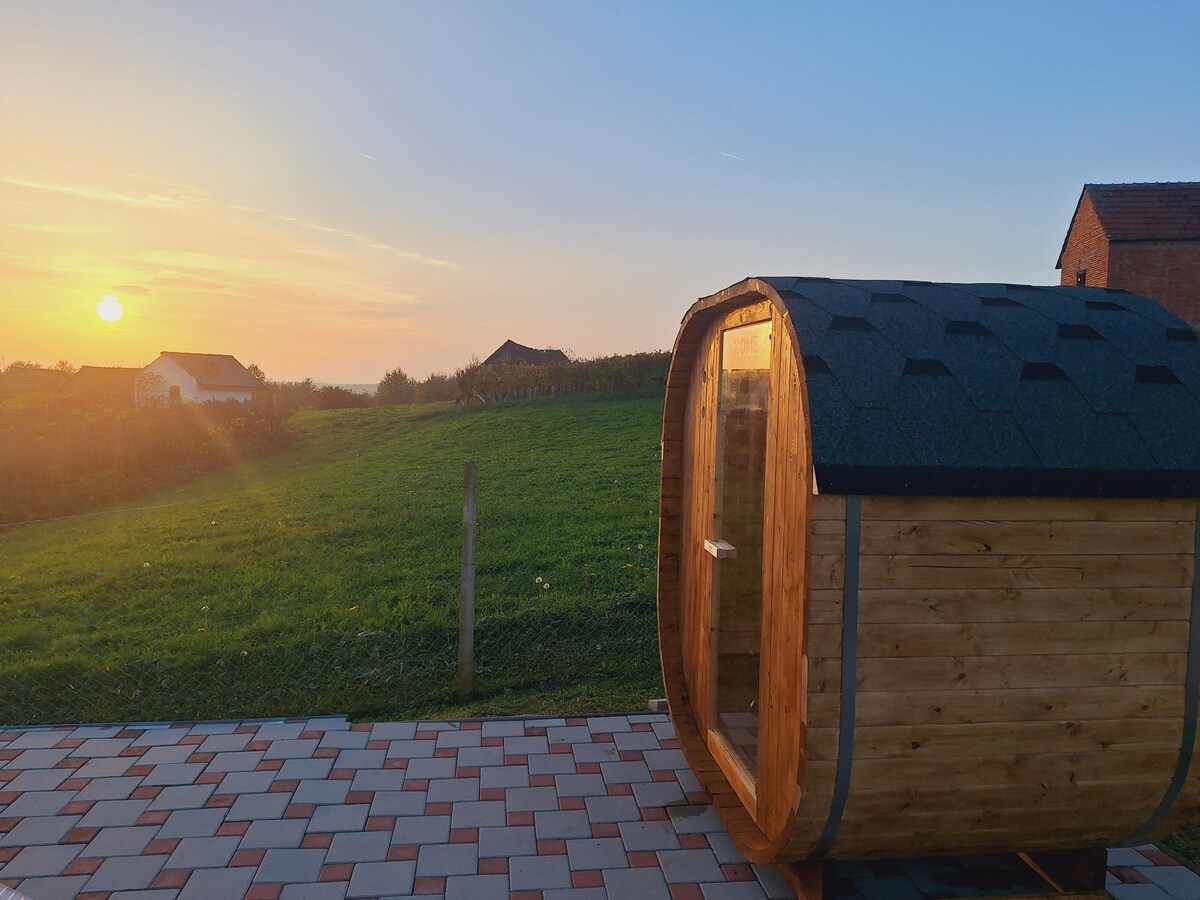 Relájate en esta escapada única y tranquila. Su magnífico lugar con hermosa naturaleza, hermosa vista a las montañas, lugar muy tranquilo y muy privado para personas que les gusta disfrutar de vacaciones agradables y tranquilas al aire libre. Parte de este centro vacacional es una diversión frutal y el turista puede utilizar la granja de frutas de condimentos por sí mismo. También está cerca de la ciudad barok de Varazdin y no muy lejos del famoso castillo de Trakoscan. Hay muchos restaurantes aquí, puedes probar el vino y la buena comida croata.