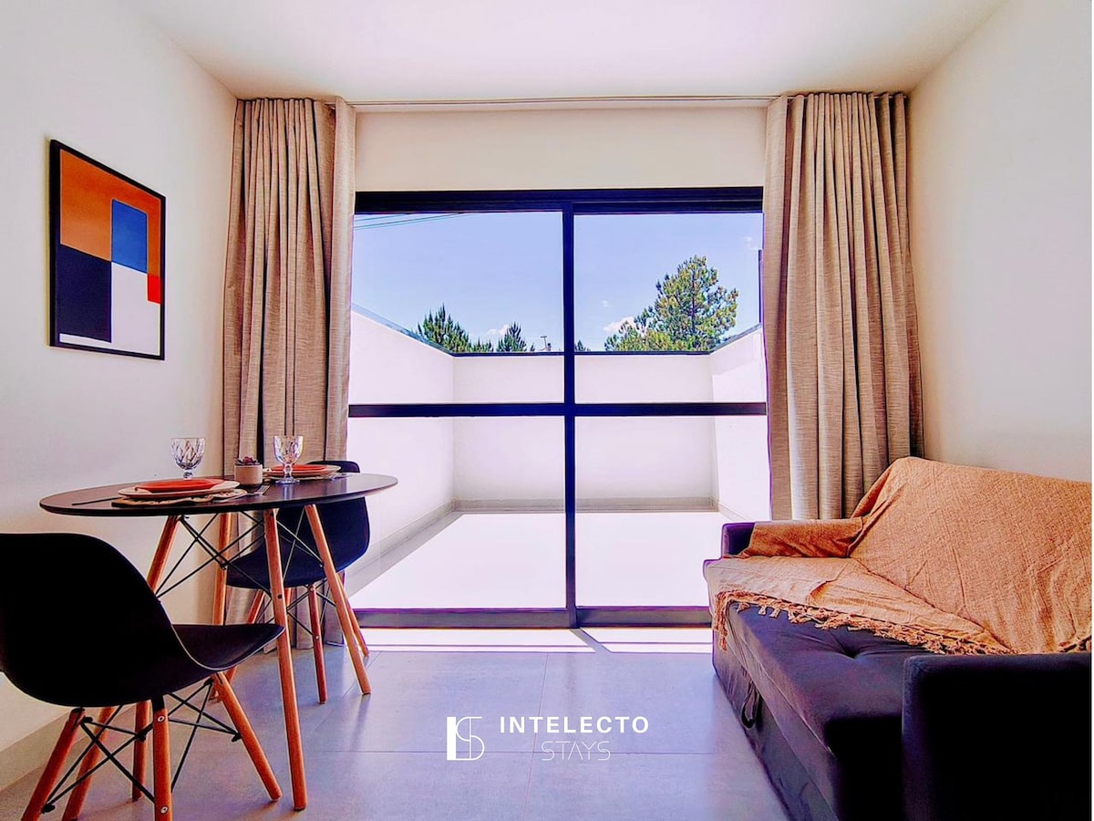 Estudio moderno con vista panorámica en el centro de Poços