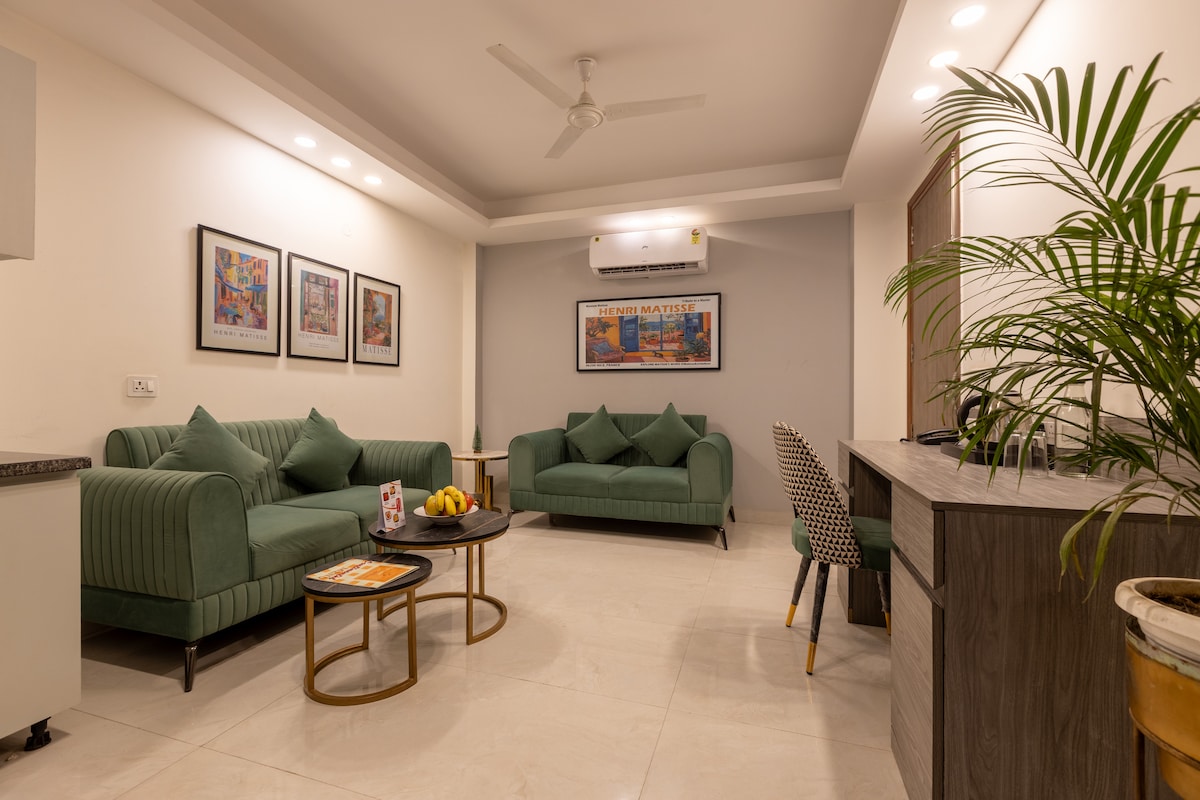 Apartamento de servicio premium 1BHK en el sector 43, Gurgaon con aire acondicionado en la sala de estar y el dormitorio, además de una cocina pequeña con inducción, microondas y cubiertos. En una zona elegante, a poca distancia del centro comercial Gold Souk y la escuela Shalom Hills, a 2,2 km del metro Millennium City Centre y a 2,1 km del hospital Fortis. Los huéspedes extranjeros son bienvenidos. El check-in anticipado estará sujeto a disponibilidad y se cobrarán 500 rupias, así como el check-out después de la hora establecida, también será el mismo con 500 rupias adicionales por cada 3 horas a partir de entonces.