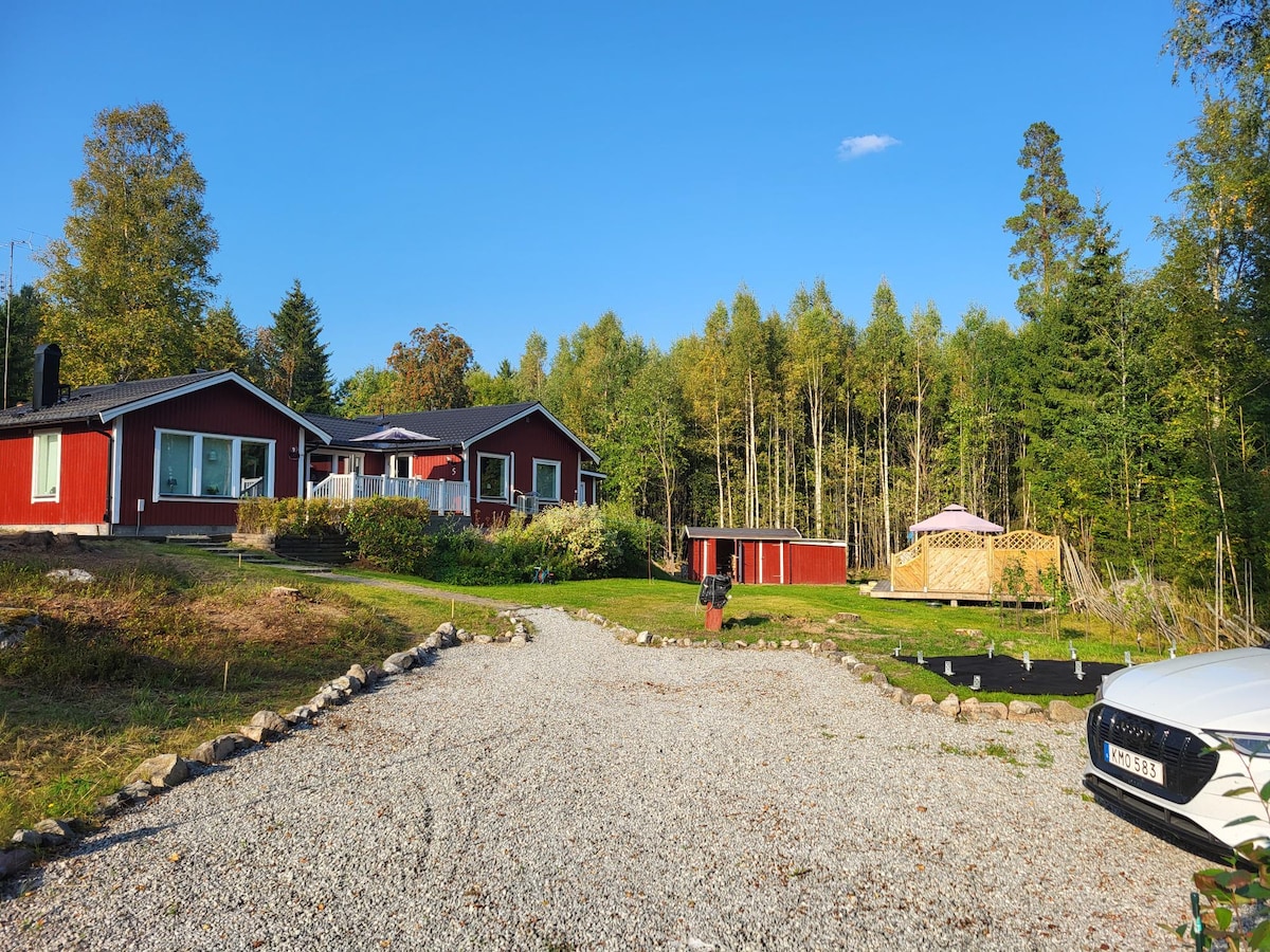 Un "Bolundare" de construcción relativamente reciente (2021) con aire acondicionado, a solo 11 km de Eskilstuna, ubicado en una zona forestal rural, a pocos pasos del hipódromo de Sundbyholm. La cabaña tiene un altillo para dormir, un baño grande con calefacción por suelo radiante, ducha y lavadora. Cocina totalmente equipada, incluido el lavavajillas. La sala de estar ofrece sofá cama, TV de alta definición de 43pulgadas con ChromeCast, Netflix, Disney Plus, PS3, altavoces blue tooth, así como una selección de DVD, Internet WiFi. Hay una gran terraza de madera disponible.