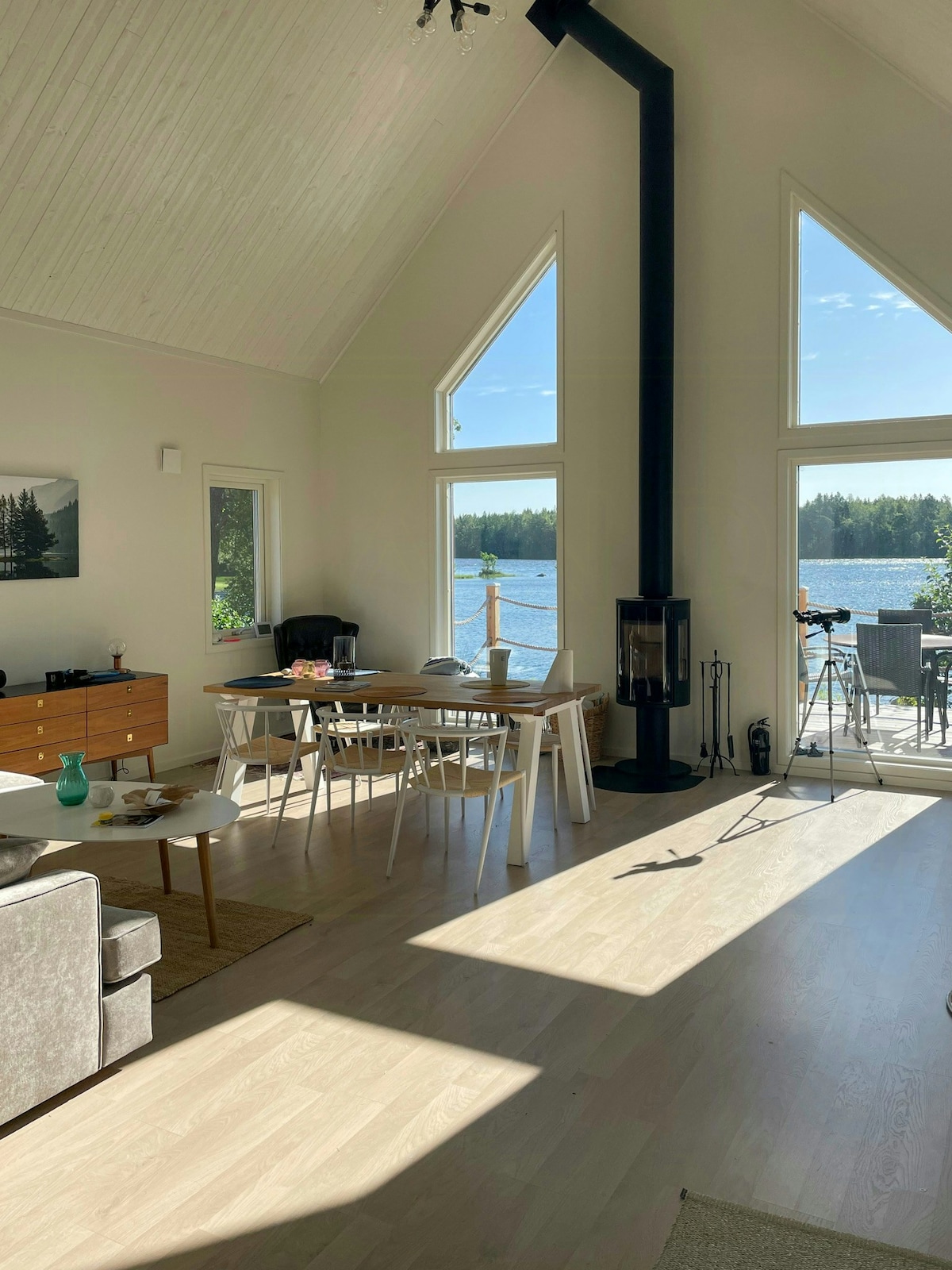 Casa de campo sueca roja tradicional con adornos blancos en un entorno aislado junto al lago. Totalmente modernizado con aire acondicionado en todas partes, preparado para el invierno y cálido durante todo el año. Escápense aquí juntos sin vecinos ni ruido de tráfico que perturbe su paz. Despiértate con el canto de los pájaros y las vistas al lago. Disfruta del café de la mañana en la terraza mientras la niebla se levanta del agua. Por la noche, ajuste la iluminación ambiental y termine el día con una película en el proyector o un viaje en barco al atardecer. Perfecto para parejas que buscan tranquilidad y tiempo de calidad.
