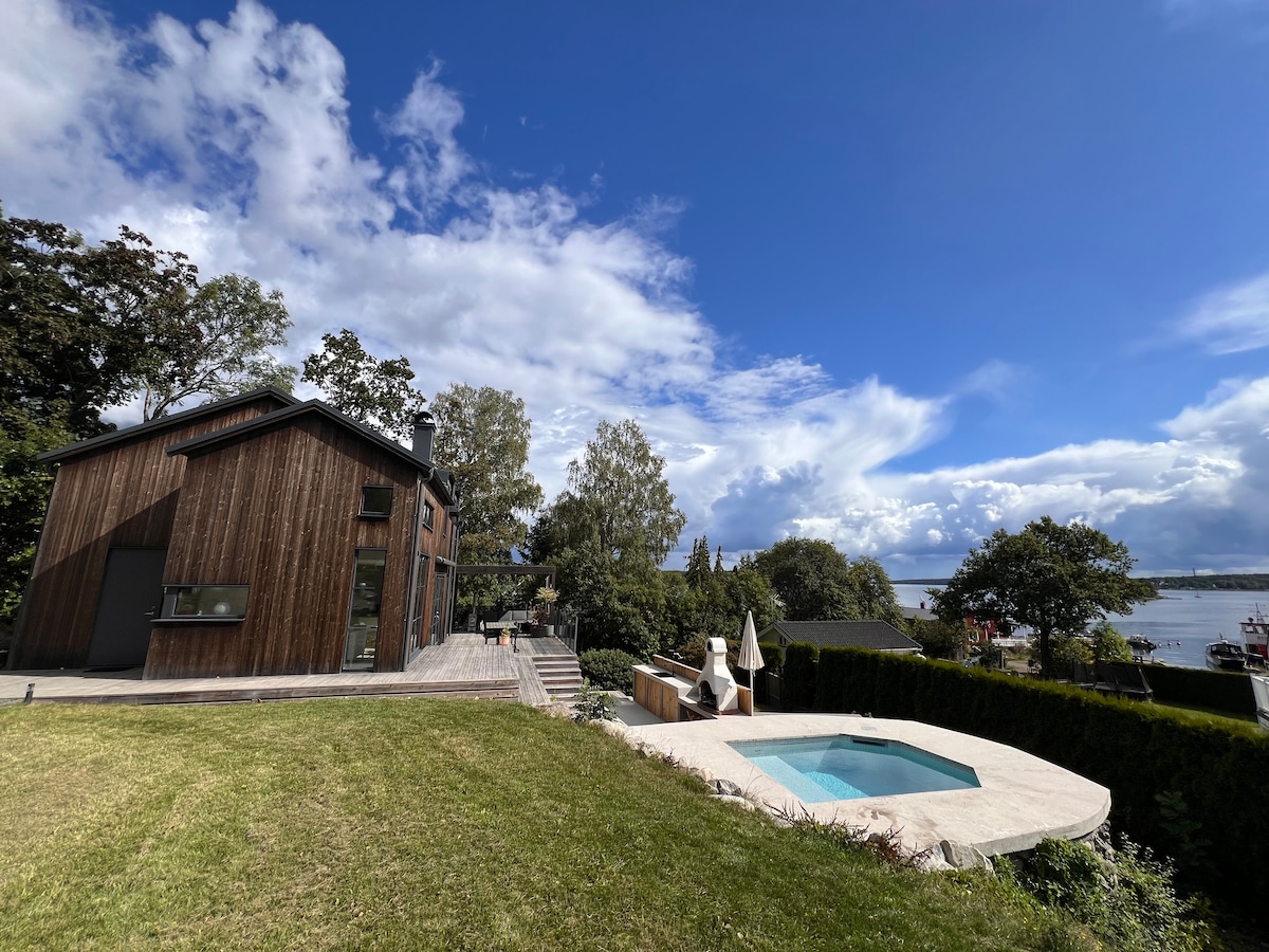 Enjoy a restfull stay in the beautiful and world famous archipelago of Stockholm. With a breathtaking view of the ocean and a minutes long walk to the beach and harbor you can truly live your best. Easy with Ferry in to Stockholm. This villa offers breathtaking panoramic views, Scandinavian design, and privacy—all just 20 minutes from Stockholm. Perfect for discerning guests seeking a refined retreat with comfort, combining the beauty of Swedish nature with the convenience of the city nearby.