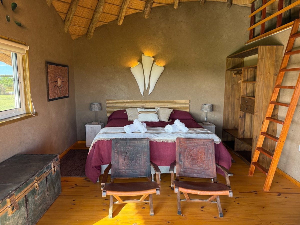 Es una casa tipo loft rústica de amplios ambientes integrados, en el entrepiso cuenta con una habitación de 7 metros por 3 con un sommier de dos plazas (queen size) y dos camas chicas con buenos colchones. Su mayor atractivo es un ventanal de 4 metros de largo por 2 de alto con una vista inmejorable a grutas de salamanca y sierras de sosa. La casa está construida en un valle con un área total de 12 hectáreas. Nuestras estadías son de 30 hs. Check in 11 hs. Check out 17 hs.