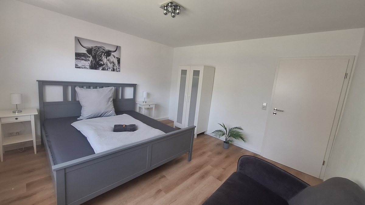 Ofrecemos a nuestros huéspedes un apartamento recién construido y totalmente amueblado en el tranquilo barrio de Kirchditmold en Kassel. Se trata de un ático construido con cariño con entrada independiente, que se ha terminado recientemente y está equipado por Holzaura. Aquí nuestros huéspedes encontrarán una sala de estar con cocina integrada, ducha+lavabo y dormitorio. El inodoro con lavabo se encuentra por separado en el apartamento. Hay conexión a Internet (wifi) y TV.