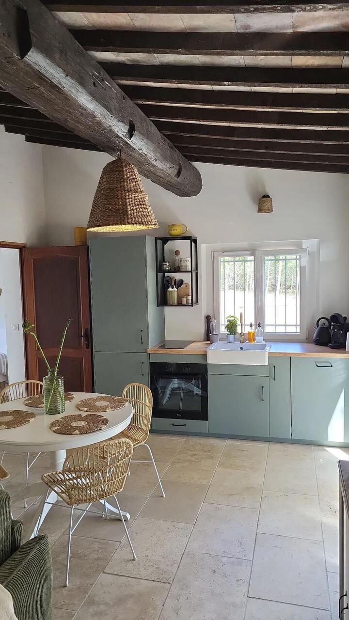 Ce chalet autonome en eau et électricité se situe sur un grand terrain de 1600 m2 arboré proche d'une ancienne et magnifique carrière. Il est constitué d'un salon très ajouré, avec un poêle, un canapé d'angle et un fauteuil tous deux convertibles, une cuisine équipée, une chambre et une salle de bain. Vous disposez d'un barbecue, d' une table de ping-pong, de deux hamacs, de deux transats, de trois tables avec la possibilité de planter des tentes. Poules, chats et chien sont en liberté.