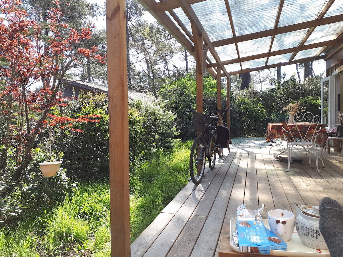 Alojamiento independiente que se encuentra en el terreno de la casa (seto divisorio) donde vivimos en familia con 2 gatos (trabajamos). A 1 km del mar, lodge de 20 m² equipado con una zona de cocina, un dormitorio y un baño con inodoro. Hermosa terraza exterior en extensión. Cobertizo para guardar sus bicicletas (no apto para motocicletas). Aire acondicionado, calefacción y wifi. Posibilidad de beneficiarse de bicicletas y tablas de surf con cargo adicional en el lugar. Se proporcionan sábanas y toallas.