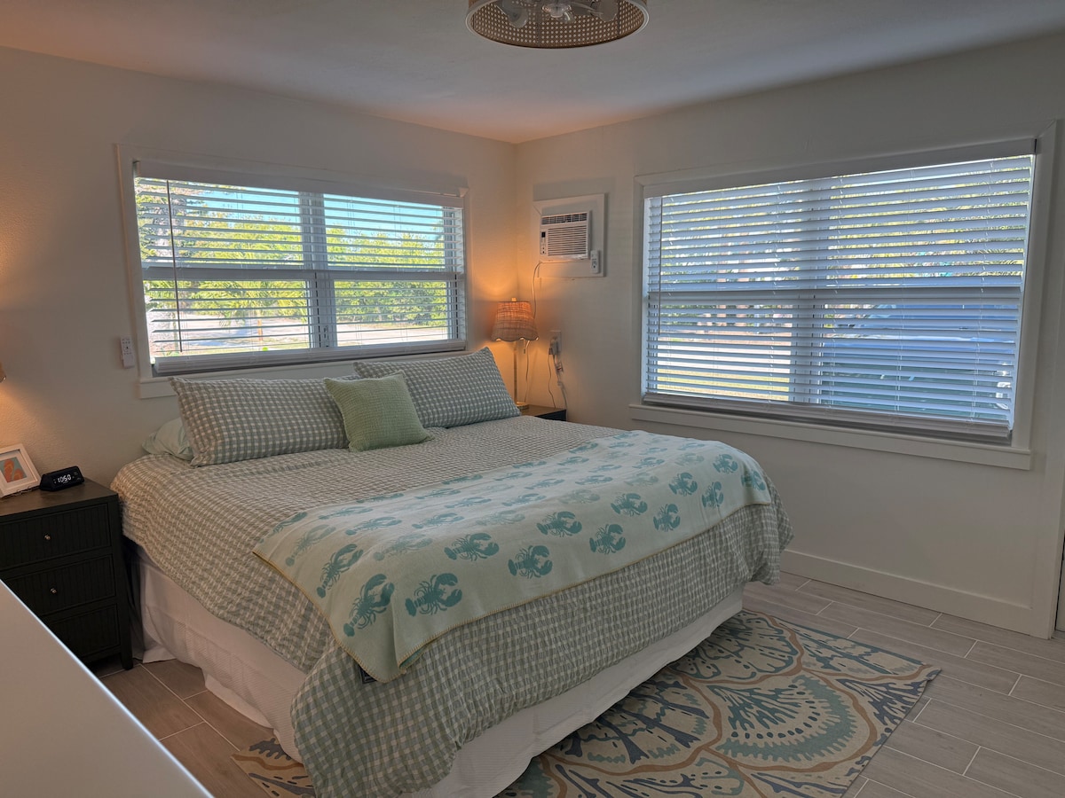 ¡RESERVA AQUÍ! A PASOS DE LA PLAYA MUNDIALMENTE FAMOSA de Manasota Key, ESTACIONAMIENTO GRATUITO. Acceso privado a la playa. A POCOS PASOS DE MUCHOS RESTAURANTES. Condominio de 2 dormitorios, 1 baño, temática de playa con acceso a PISCINA CLIMATIZADA al otro lado de la calle. Parrilla de cortesía y atardeceres en el Golfo. ¡Te ofrecemos café de cortesía! Se proporcionan sillas de playa, toallas y juguetes de arena. La cocina está actualizada con agua filtrada, hielo y utensilios suministrados. El dormitorio principal tiene una cama tamaño queen, cajones extraíbles y chimenea. Muelle para barco disponible bajo pedido.