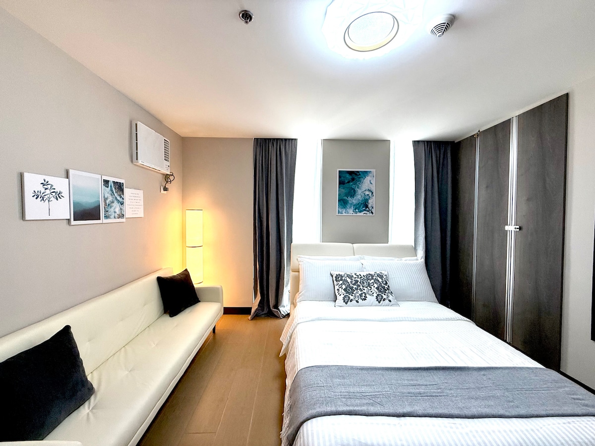 Welcome to your modern classic 1BR in BGC, designed with elegant and timeless interiors. Perfect for your staycation, business trip, or city escape. Enjoy a cozy bedroom, fast WiFi, and a comfortable space to unwind. Located in Park McKinley West Tower A near Venice Grand Canal Mall or just minutes from NAIA. The building also features a mall on the ground floor. Click the heart button on the top right to save for your future staycation. ❤️