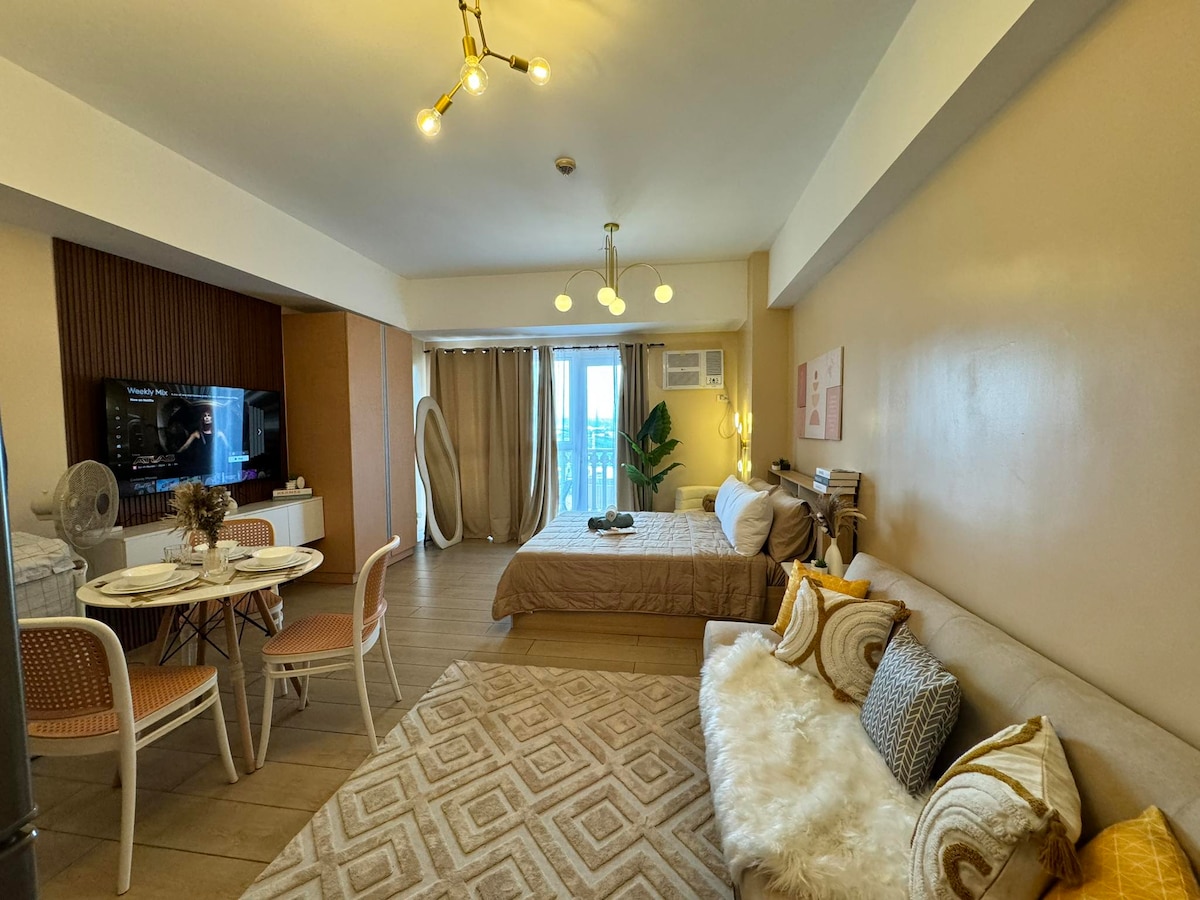 Welcome to your stylish home away from home in McKinley Hill, Taguig! Stay in this cozy studio at Venice Luxury Residences, just steps from Venice Grand Canal Mall and minutes away from BGC. Perfect for couples, solo travelers, or business guests looking for comfort, convenience, and city charm. Unwind in this stylish, nature-inspired studio just steps from Venice Grand Canal Mall! Featuring warm lighting, a comfy queen bed, and complete amenities for a relaxing staycation.
