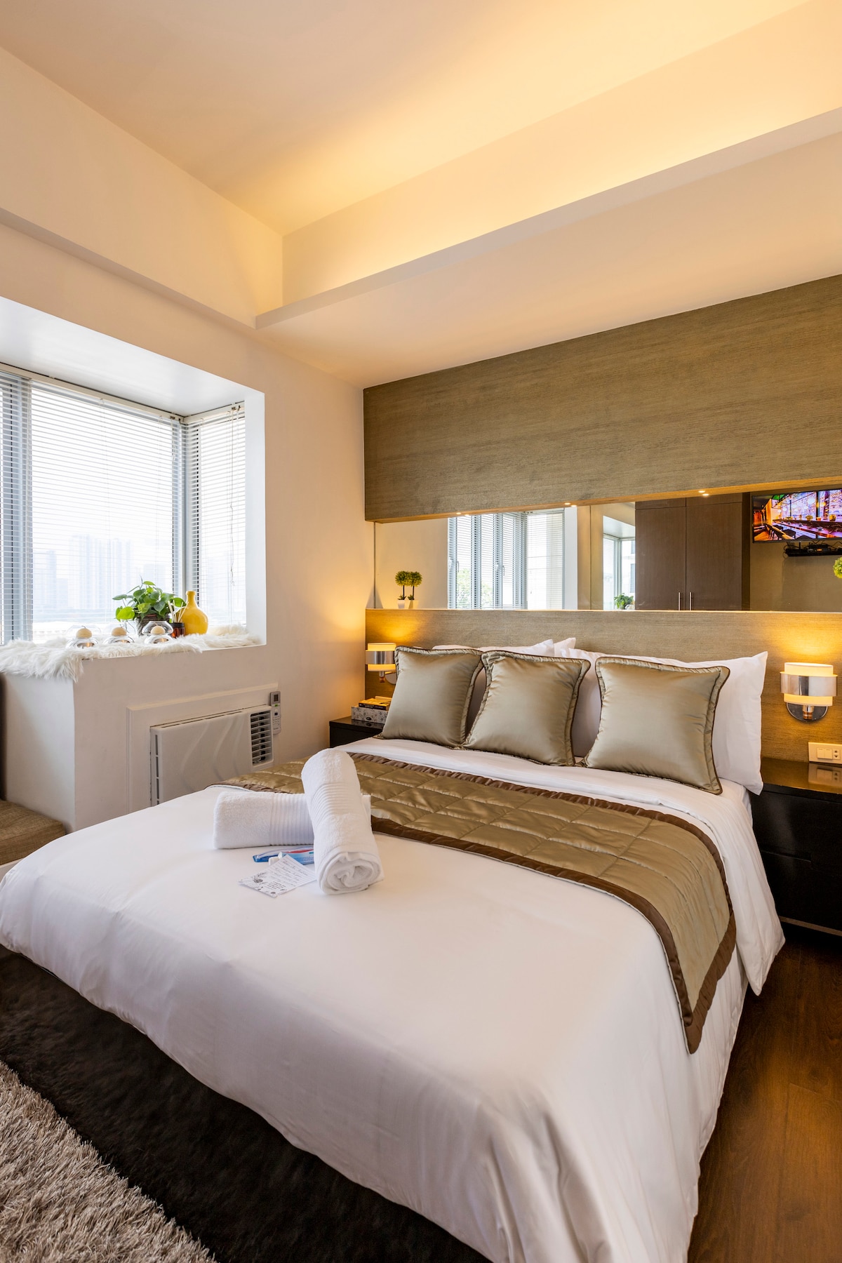 Located at The Venice Luxury Residences - Bellini Tower, 7th Floor, Mckinley Hill, Taguig City and with exclusive link to Venice Grand Canal Mall. We poured our passion and creativity to come up an elegant and homey suites with a view of the Upper McKinley Road. Our goal is to make every corner of our suite very functional and your favorites. I hope you will have a comfortable stay and happy with our DIY interior. Kindly read our House Rules (Rule No.10) if you are booking for 4 guests.