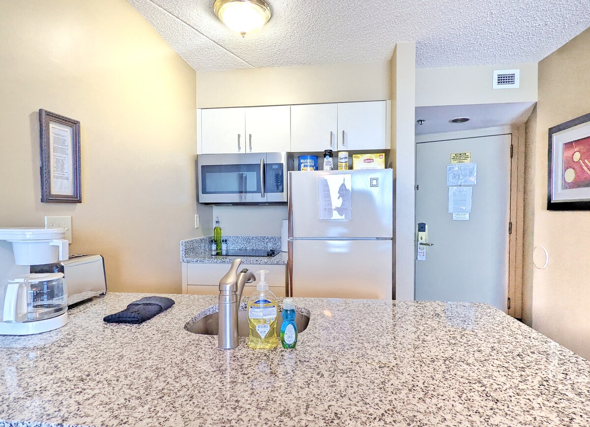 ¿A usted y a su familia les encanta visitar la playa, pero odian tener que subir al auto, conducir hasta allí, solo para conducir a casa cubierto de arena cuando necesita un refrigerio o un descanso? ¿Te gusta pasear por el paseo marítimo, disfrutar de las opciones gastronómicas y de entretenimiento? ¡Mi unidad de condominio estudio de dos camas ofrece acceso DIRECTO al paseo marítimo! Cruza EL paseo marítimo, tal vez 10 pies, Y estarás EN LA playa. ¡No puedes obtener más acceso perfecto a la playa y al paseo marítimo! ¡Incluyo estacionamiento gratuito y dos cómodas camas tamaño queen!