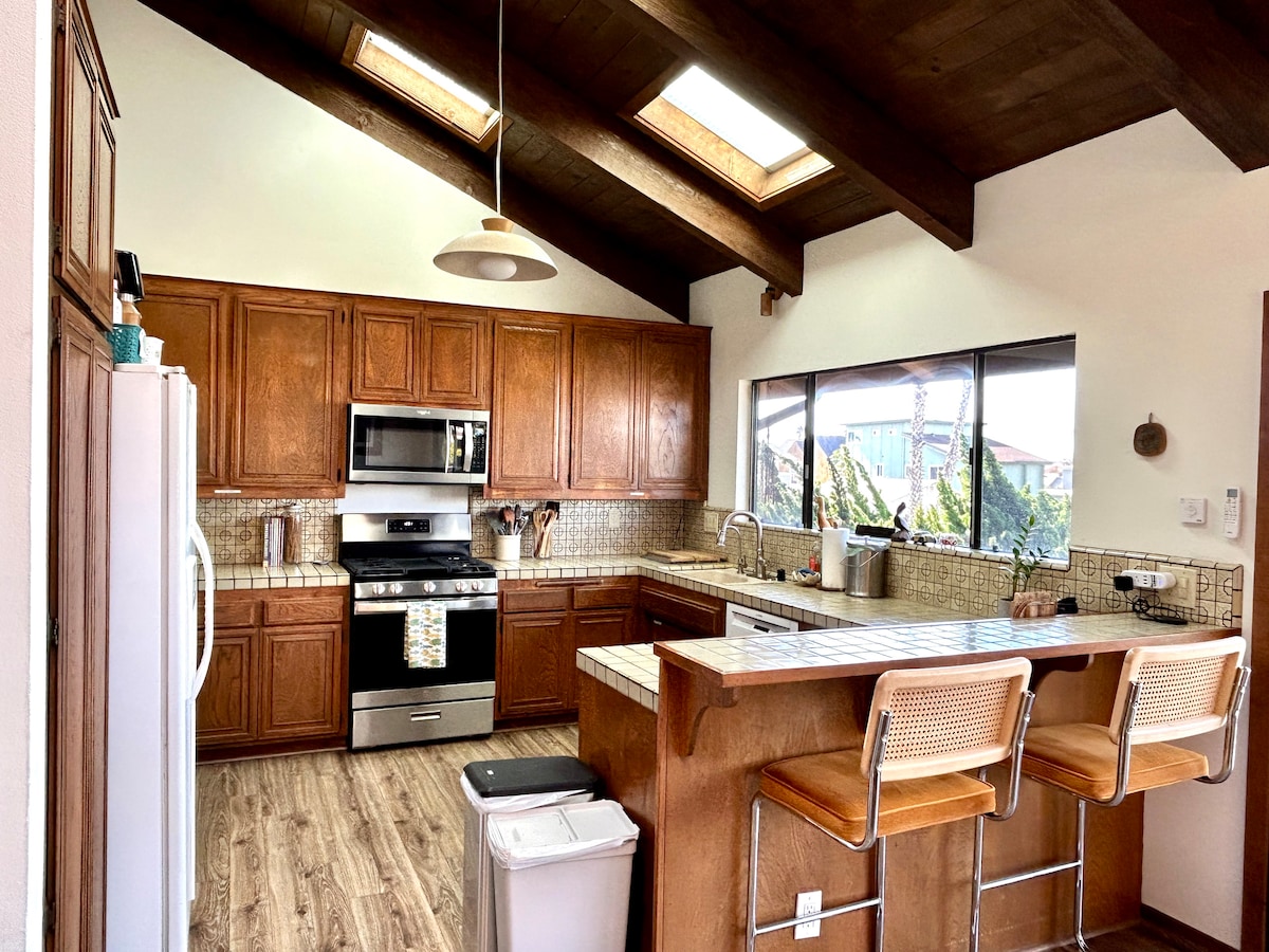 Custom home with ocean, surf & Channel Islands views. 3 bedroom, 2 bath newer home located on a cul-de-sac. Upscale furnishings, gourmet kitchen with center island, dining area, comfortable living room, gas stone fireplace, speedy WIFI, Entertainment system, outdoor fully furnished patio with barbeque, separate fenced yard professionally landscaped with firepit & seating area. Everyone is welcome here. Enjoy your vacation or workation in comfort. Host pays the TOT City Taxes.