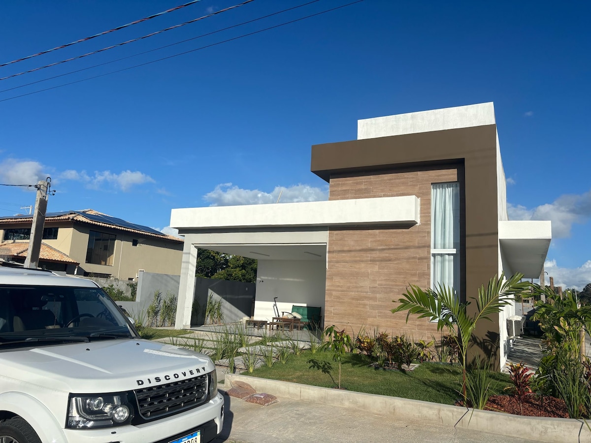 Casa aconchegante a 200 metros da praia em condomínio fechado frente ao mar com toda infra estrutura como academia, piscina hidromassagem, Beach tênis , quadra de futebol gramada, salão de festas, parque infantil, guarita 24 horas, churrasqueira. Esta acomodação é perfeita para viagens em grupo. Temos 3 suítes climatizadas, piscina e hidromassagem privativa, churrasqueira, redes, área de serviço com máquina de lavar, aquecimento de água solar, wife, fechadura eletrônica.