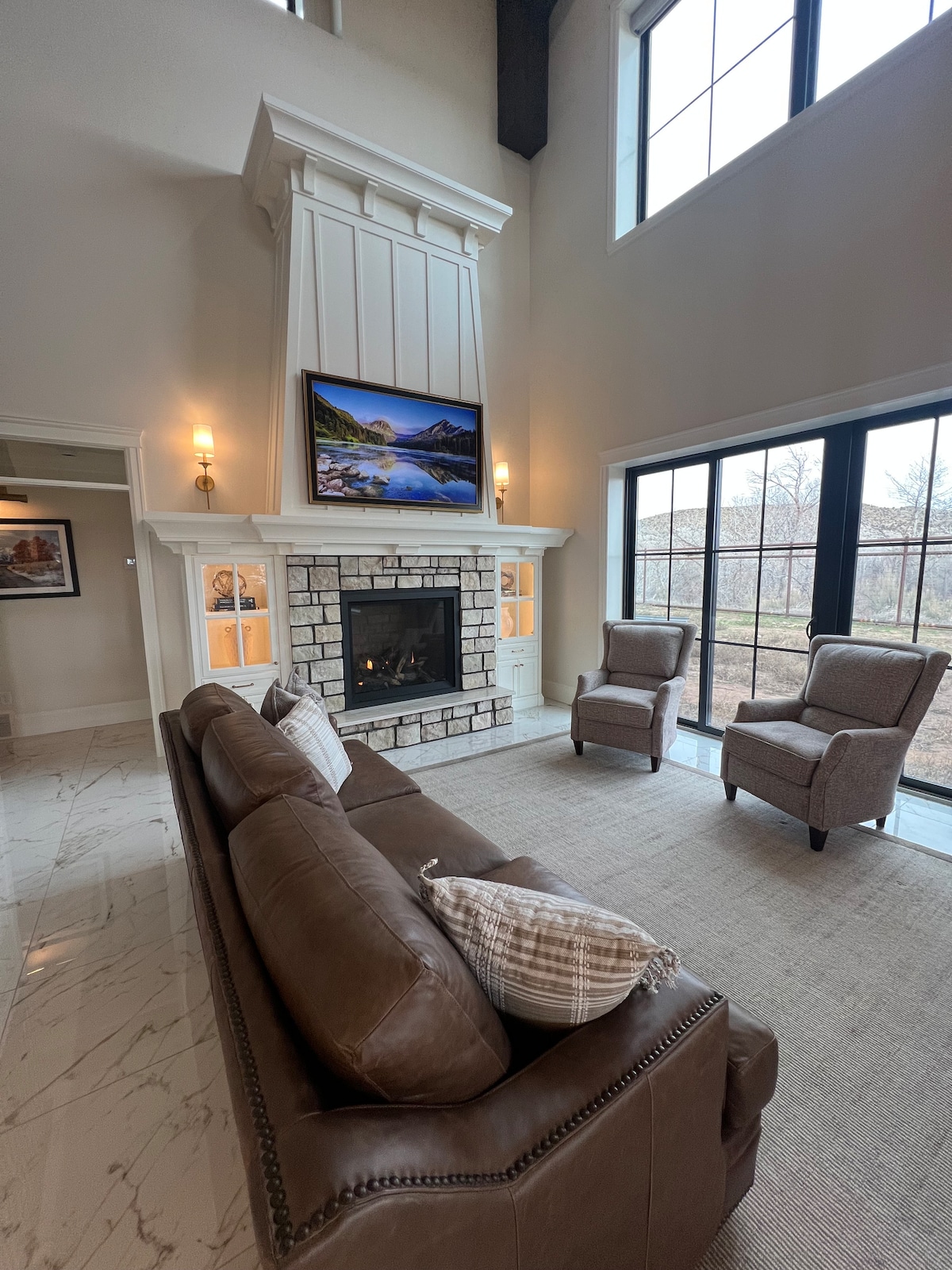 Escápate a este impresionante granero dominium, una mezcla perfecta de encanto elegante y lujo moderno, enclavado en el corazón de la naturaleza. Este espacioso refugio de 4 dormitorios y 4,5 baños ofrece la escapada ideal para familias, amigos o grupos pequeños que buscan relajarse, recargar energías y sumergirse en la belleza del aire libre. Entra y ser recibido por techos abovedados, vigas de madera expuestas, grandes ventanales, acogedora chimenea de piedra y cocina gourmet totalmente equipada con gama Wolf y máquina de hielo de pellets.