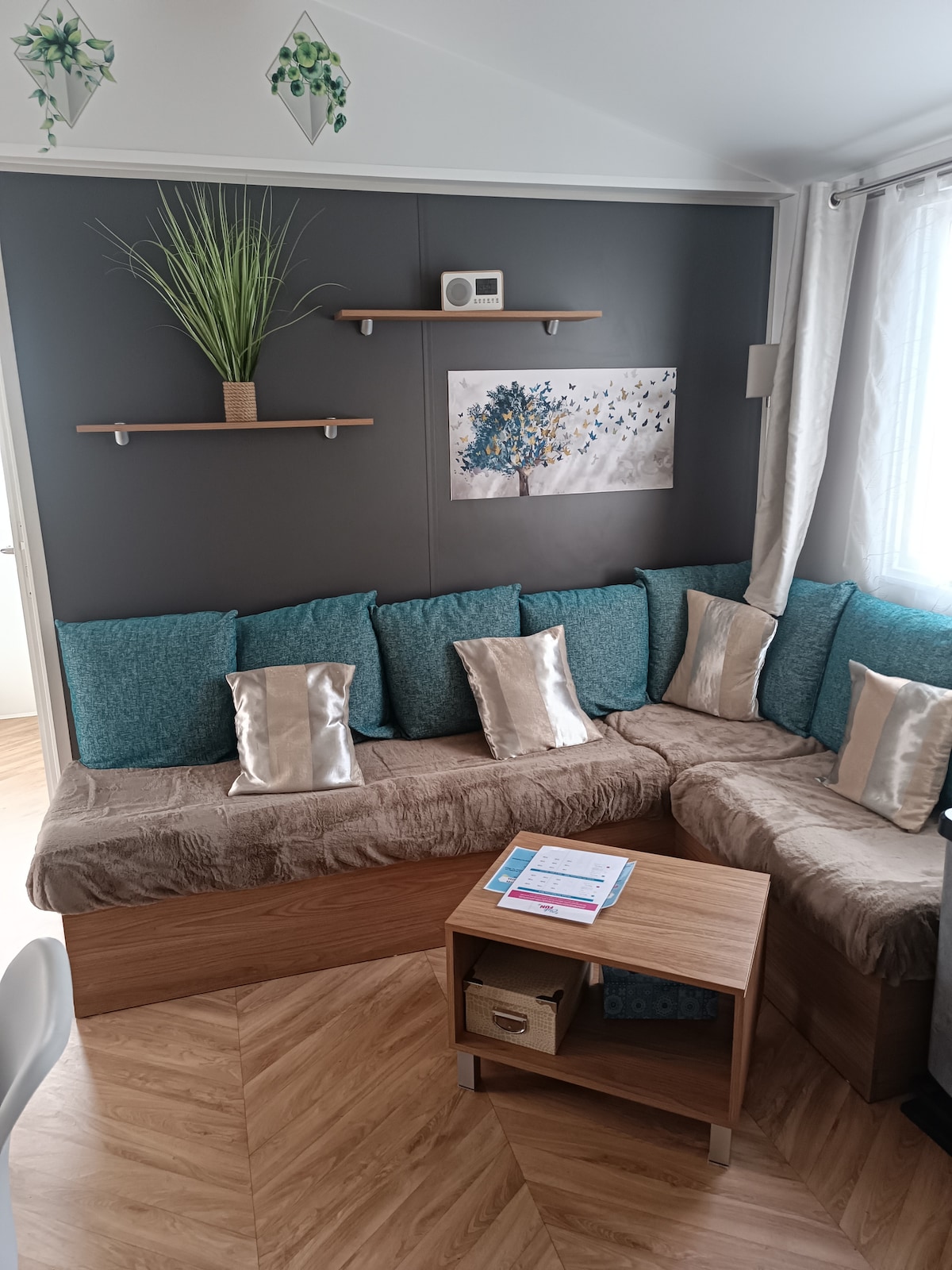 Le damos la bienvenida para sus estancias en nuestra encantadora casa móvil espaciosa y luminosa de 40 m2 con un aspecto Zen , contiene 3 dormitorios, uno de ellos principal con baño privado, una cocina totalmente equipada, una terraza cubierta. Está equipado para niños pequeños. Hay una lavandería y estaciones de carga para vehículos eléctricos disponibles en el camping. ⚠️Fun pass obligatorio para las actividades tarifa en internet/fotos del anuncio La ropa de cama y las toallas son adicionales⚠️