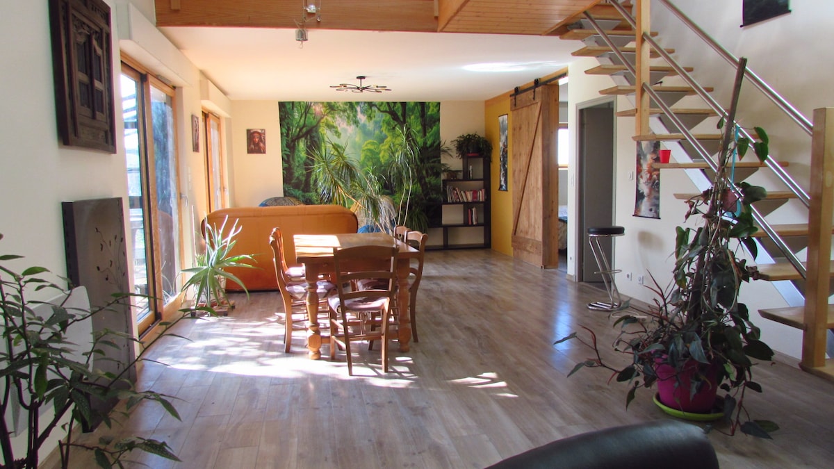 Empuje la puerta y déjese sorprender por este loft único, escondido detrás de una fachada discreta en el corazón de Aurillac. Antiguo estudio de imagen médica metamorfoseado en 270 m² de diseño industrial, revela un universo relajante, salpicado de dos patios privados. El apartamento está diseñado alrededor de un patio central, un verdadero espacio de estar al aire libre, alrededor del cual se disponen los dormitorios y las áreas comunes.A dos pasos del centro histórico, tiene capacidad para 8 personas.