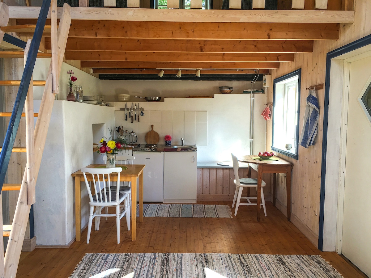 Alójate en el idílico pueblo de Vickleby, en la isla de Öland, conocido por sus residentes creativos y galardonado como pueblo de Öland del año 2017. A menos de 200 metros se encuentra el restaurante Bo Pensionat y Capellagården, la famosa escuela de arte de Carl Malmsten. Con alvaret a la vuelta de la esquina, las increíbles experiencias naturales están al alcance de la mano. La casa de campo, que actualmente alberga a 2-3 personas, tiene su propio patio, cocina y un baño muy básico (solo acceso exterior) con ducha y WC.