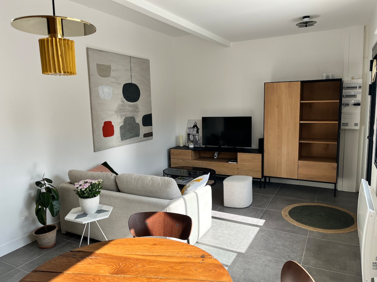 Impresionante estudio de 40 m², reformado, en la planta baja, entrada independiente, tranquilo, ideal para 3 personas, situado en el corazón de la naturaleza entre el Marne, los viñedos y el bosque. Comercios a 5 minutos en coche, estación de tren de Ile de France a 10 minutos en coche. 1 cama doble, 1 cuna y juegos hasta 12 años, trampolín, parque infantil cerca. Ideal para familias con niños. Zona de cocina, cómodo sofá, TV grande, lavadora. Oferta de bienvenida: una botella de vino.