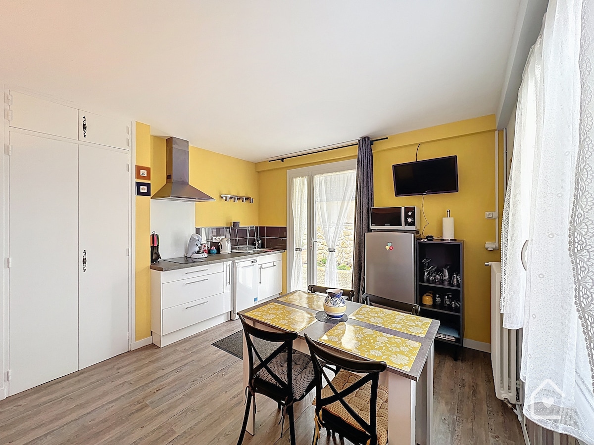 Con una ubicación ideal en una zona tranquila en el casco histórico de Saumur, a diez minutos a pie del centro de la ciudad, su alojamiento está amueblado con mucho cuidado, en una dependencia de nuestra casa, en el corazón de un encantador jardín amurallado. La casa está organizada como un estudio, con una gran sala de estar-dormitorio, una zona de cocina y un baño separado. El inodoro está en el cuarto de baño. Todo está a ras de suelo y da directamente al jardín. Aparcamiento público y gratuito frente a la propiedad.