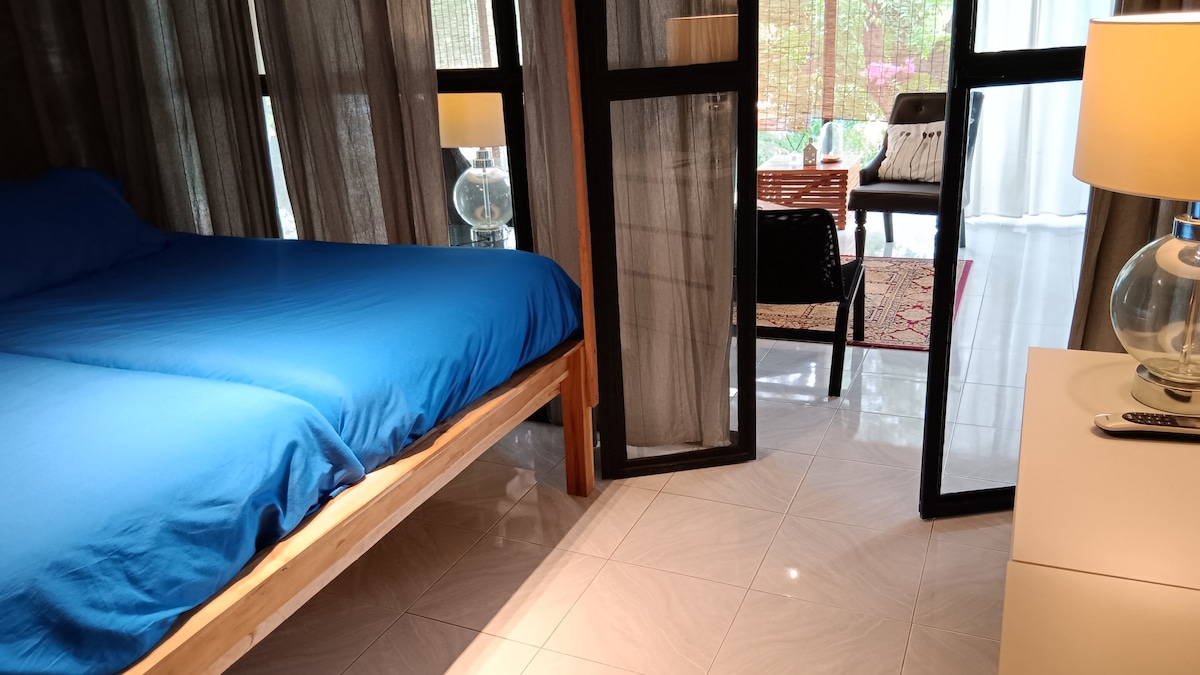 Nuestro estudio Urban Oasis en el centro de Vientiane ofrece comodidad y privacidad para un máximo de cuatro viajeros. Disfruta de un refugio sorprendentemente tranquilo y sereno a solo unos pasos de vibrantes mercados nocturnos y grandes supermercados. El estudio cuenta con una cama tamaño queen y un sofá cama versátil, que ofrece cómodas disposiciones para dormir para parejas o amigos. Experimenta lo mejor de ambos mundos: emoción urbana y relajación pacífica.