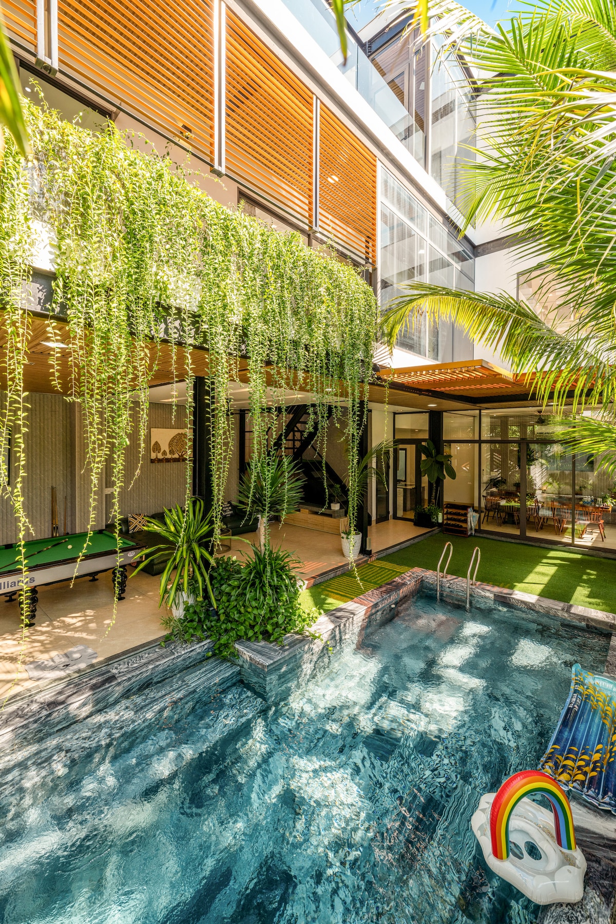 🏡 Te damos la bienvenida a FEN VILLA❤️ 🛏️ 5 dormitorios – 6 camas – 6 baños – amplia sala de estar y cocina con aire acondicionado y ventiladores de techo 💦 Piscina privada fresca: juguetes flotantes incluidos 🎱 Mesa de billar – carbón para barbacoa gratis 🍉 Frutas y bebidas de bienvenida de cortesía ✈️ Recogida gratuita en el aeropuerto para reservas de 4 noches o más 🌴 Con un cálido estilo tropical, la villa es perfecta para grupos de amigos, colegas o familias 🏖️ My Khe Beach está a solo 5 minutos a pie, rodeado de minimercados, cafeterías y restaurantes😍