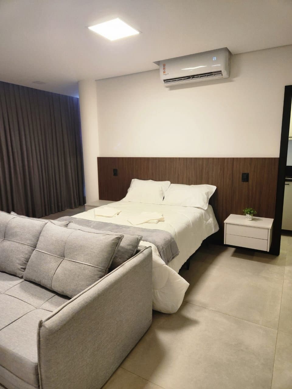 Relájate en este loft nuevo, elegante y súper bien equipado, perfecto para un máximo de 3 personas. A solo 80 metros de Vila Germânica, estarás en el mejor lugar de Blumenau: una región tranquila, encantadora y céntrica al mismo tiempo. Diseñado para ofrecer una comodidad absoluta, el loft cuenta con vidrio Weiku, una tecnología especial que reduce significativamente el ruido externo, lo que garantiza noches tranquilas y días de descanso total.