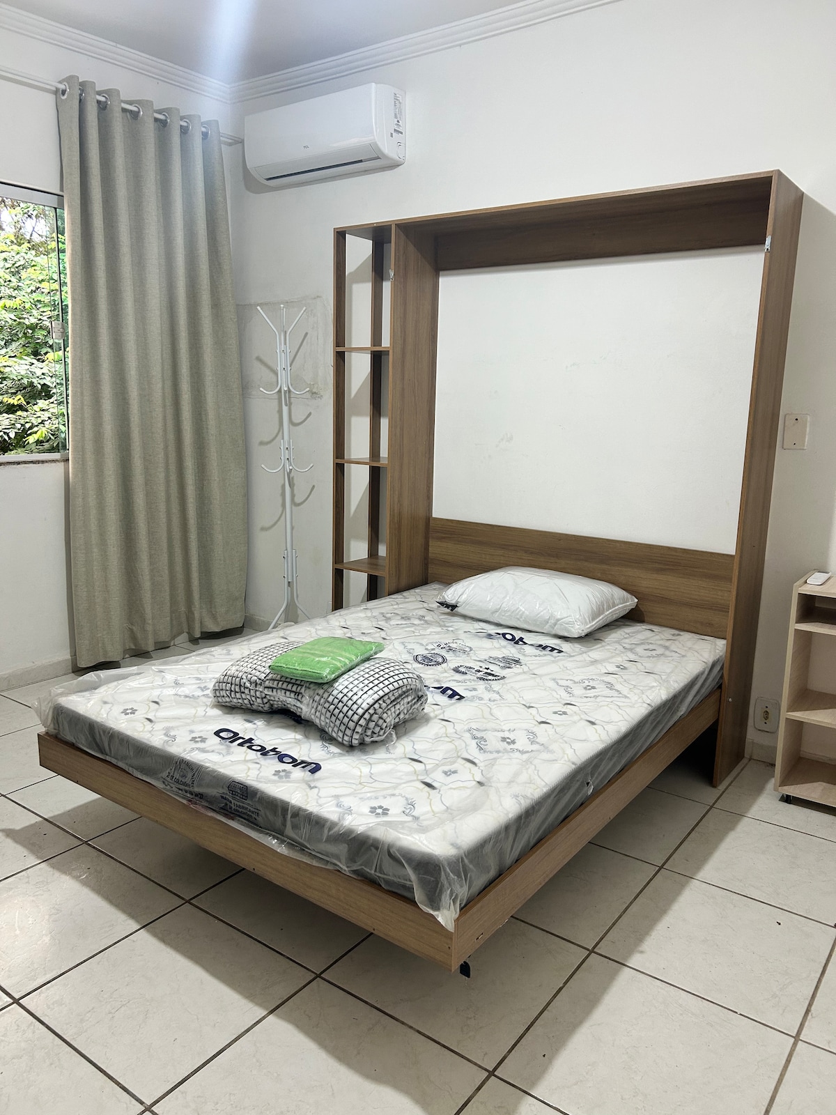 Alojamiento sencillo, acogedor y con mucha privacidad. Compuesto por dormitorio, sala/estudio, baño privado, balcón, patio y garaje. Está equipado con cama, nevera, sandwichera, cafetera eléctrica, tanque, fregadero, lavadora, ropa de cama, artículos de limpieza y papel higiénico. Importante: no proporciono toallas de baño. El alojamiento está bien ubicado muy cerca del aeropuerto de Vitória-ES, en un barrio residencial, tranquilo, seguro y arbolado.