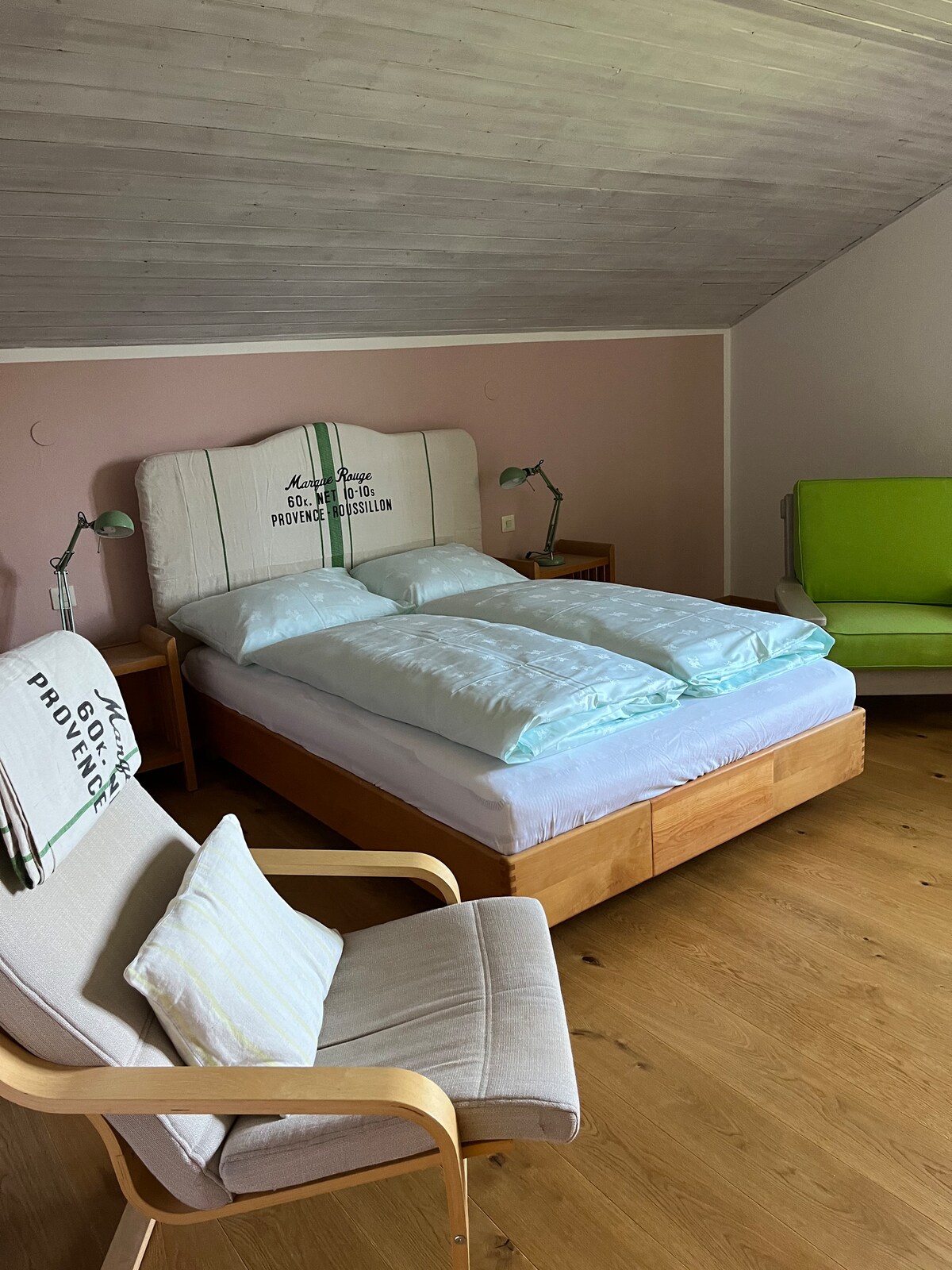 Acogedor departamento en el primer piso para hasta 6 personas (60 m²) con hermoso balcón y hermosas vistas al lago. El departamento está recién reformado. El departamento está prácticamente dividido con una cocina, una sala de estar, un baño, un inodoro de invitados separado y dos dormitorios. Cada una con camas de somieres modernas, armario, espejo y TV de pantalla plana. Un dormitorio también tiene una litera. Hay dos espacios para estacionar y un espacio para su equipo deportivo, como bicicletas o esquís.