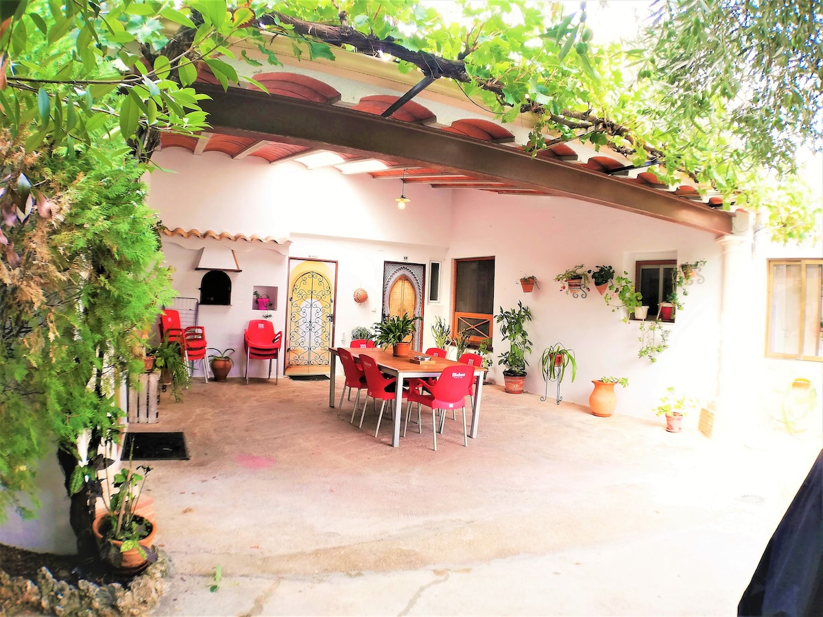 En este alojamiento se respira tranquilidad: ¡relájate con toda la familia o amigos! El alojamiento con su porche y barbacoa es independiente y privado. Está en una parcela 5000m2, con aparcamiento, piscina, canasta de baloncesto, Wi-Fi, ... esta zona es compartida con el dueño y/o con otros huéspedes. Hay varias zonas de baño en el río Cabriel, también hay varios manantiales (todos de aguas termales, 27grados) con sus balsas naturales, como se ve en las fotos.