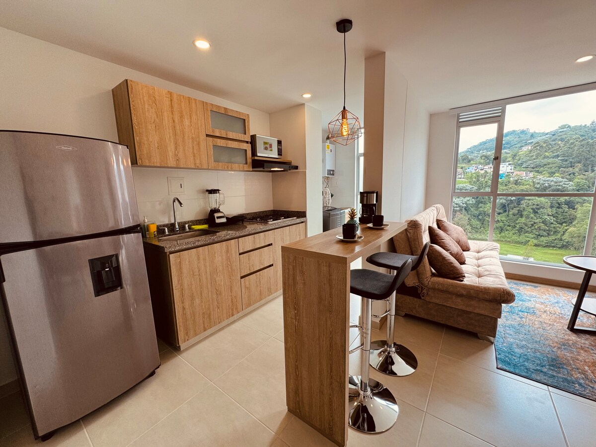 Disfruta una estadía cómoda y tranquila en este apartamento nuevo y moderno, ubicado en una zona central de Manizales, cerca de todo y a pocos pasos de la Universidad Autónoma. Su diseño contemporáneo, los espacios iluminados, una vista hermosa y una cocina equipada, lo convierte en el lugar perfecto para viajes de estudio, trabajo o descanso. Cerca de todas las comodidades, Universidad, Avenida Santander y centro. !Una estadía practica, comoda y con estilo! No hay parqueadero de Carro.