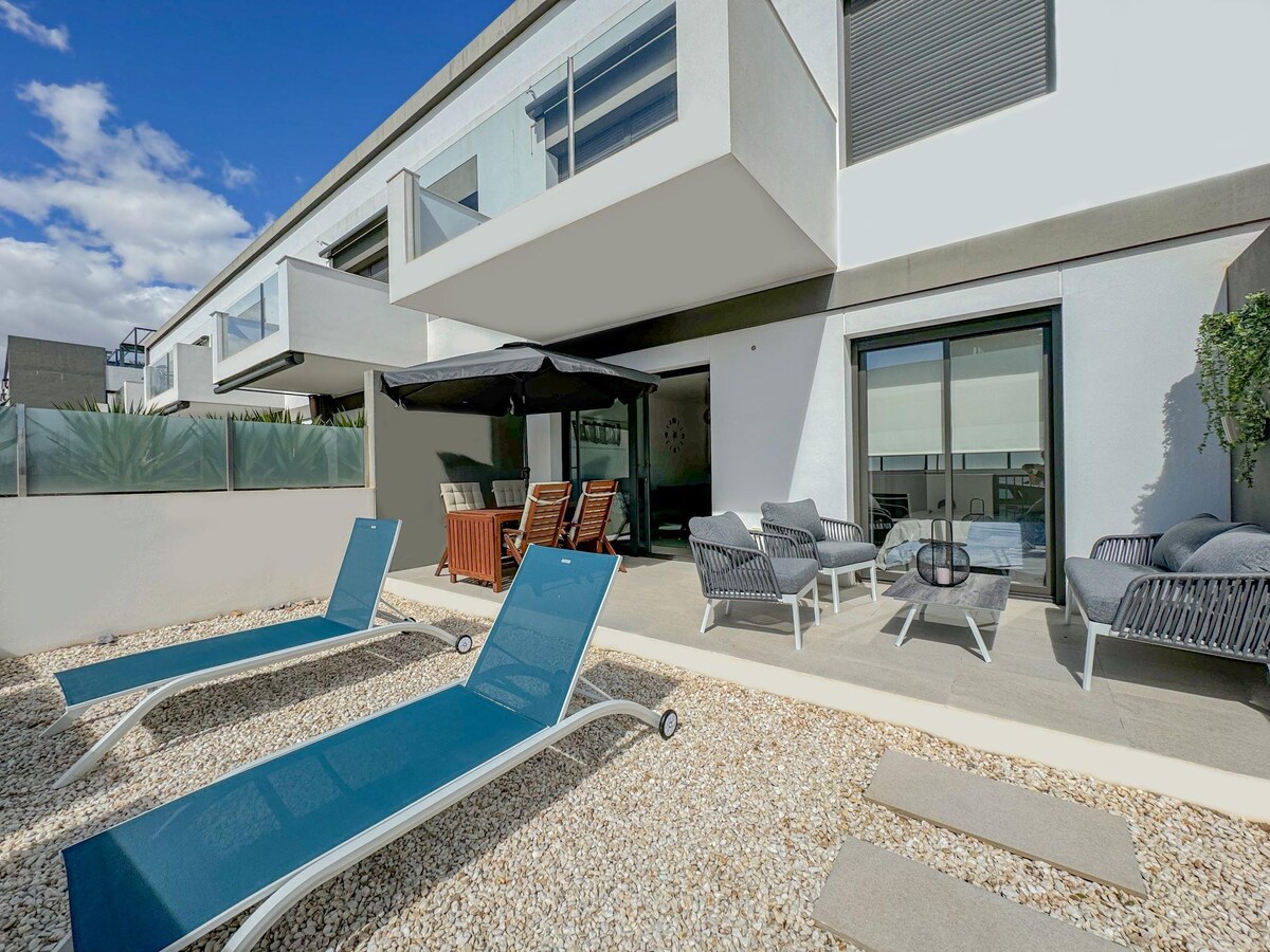 Escape to this sunny, modern ground-floor corner apartment, perfect for a holiday retreat. This 2-bed, 2-bath home comfortably fits four guests and features a large private garden with a BBQ and patio. Enjoy seamless indoor-outdoor living with direct, private gate access to a stunning 18-meter communal pool. Ideal for families and couples seeking relaxation and style, just a short walk from local restaurants and bars.