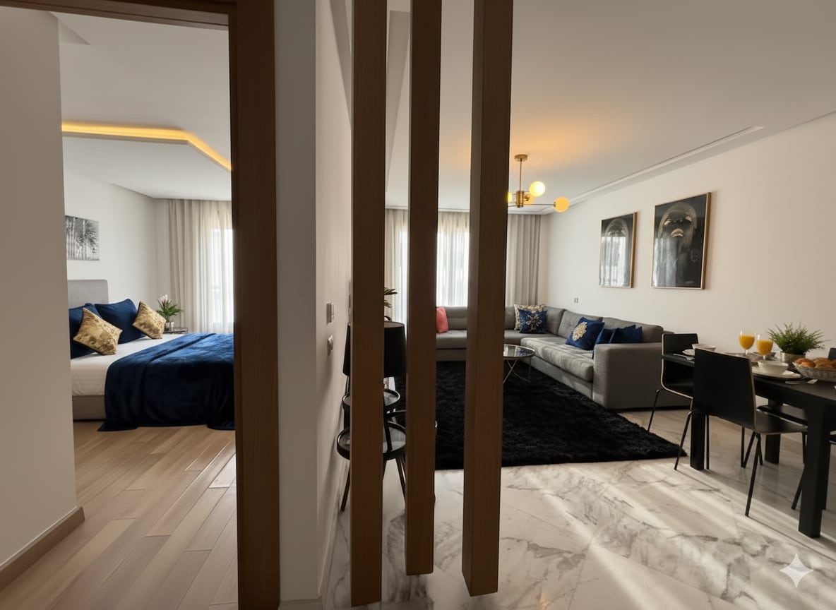 Nuestros apartamentos son una verdadera sinfonía de elegancia y belleza natural, que lo convierte en una estancia excepcional, este hermoso apartamento le da la bienvenida en un ambiente cálido durante todo el año, combinando perfectamente estilo y comodidad, Disfrute de un entorno de vida exclusivo en nuestros apartamentos seguros, rodeado de exuberante naturaleza, suntuosos jardines interiores y una espléndida piscina. estacionamiento gratuito las 24 horas seguro 100% LA recepción está disponible las 24 horas